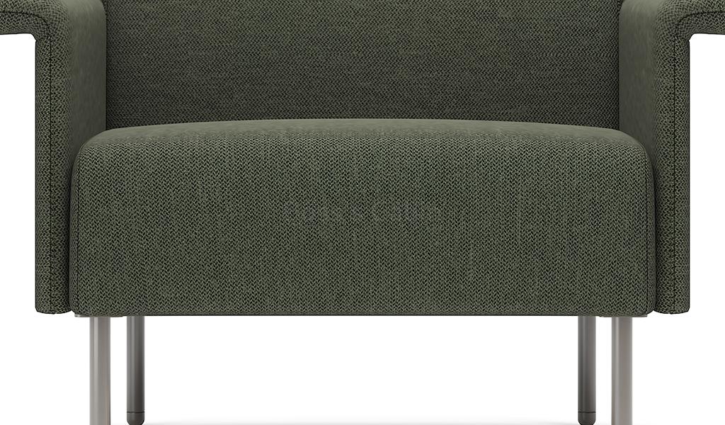 1. Single seat sofa in fabric upholstery. 2. Meteor gray powder coated steel legs.