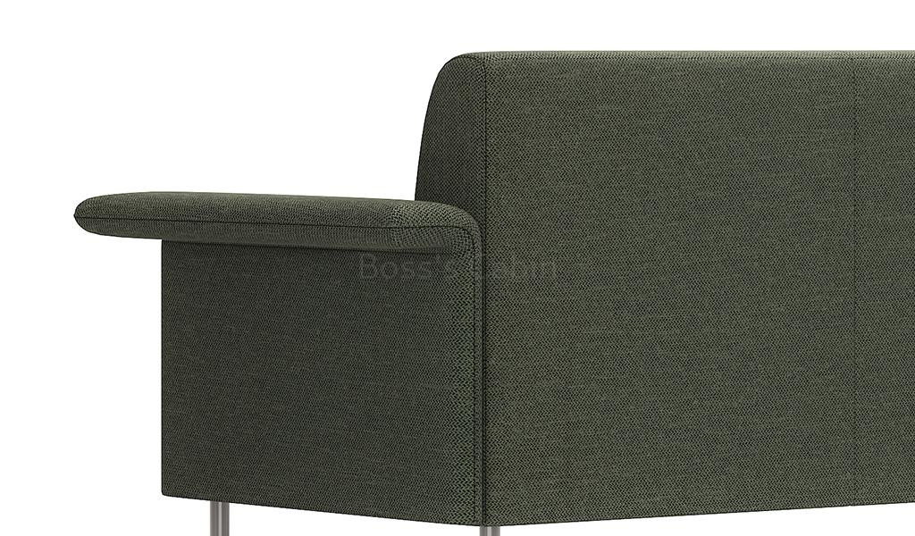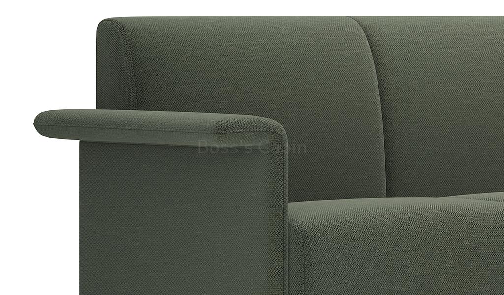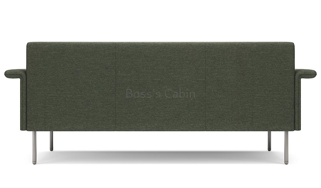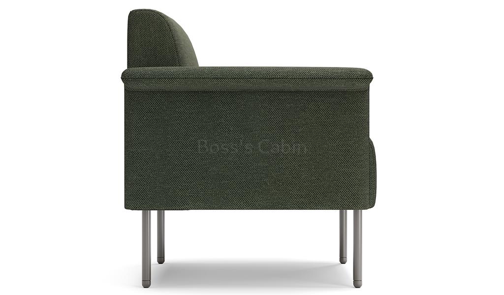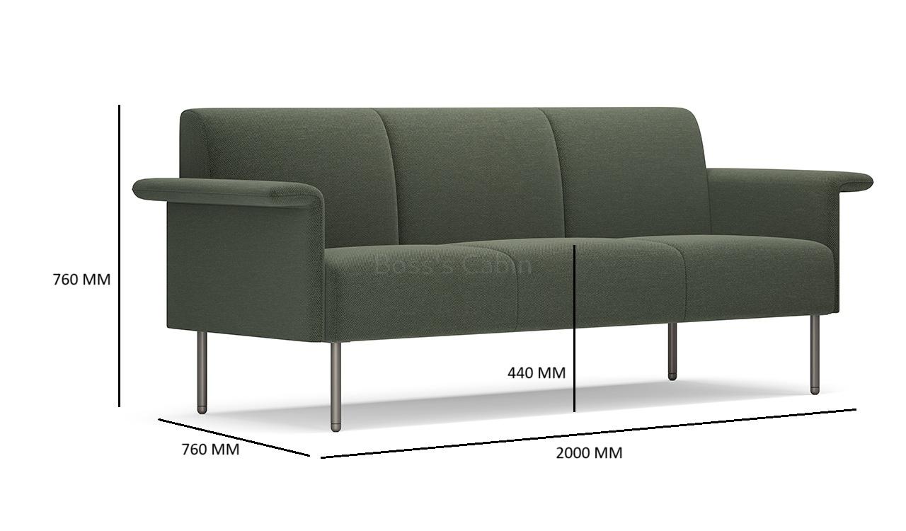 A sleek three seater sofa in fabric upholstery with flat ouward turned armrests. Designed for small spaces it can fit anywhere without taking up too much space and yet provide comfortable seating. Upholstered in a choice of 100% polyester fabrics with multi-layer high density foam and solid wood/plywood Mortise & Tenon inner frame . Includes meteor gray powder coated steel legs. Ideal for modern office cabins, waiting areas, lobbies etc.