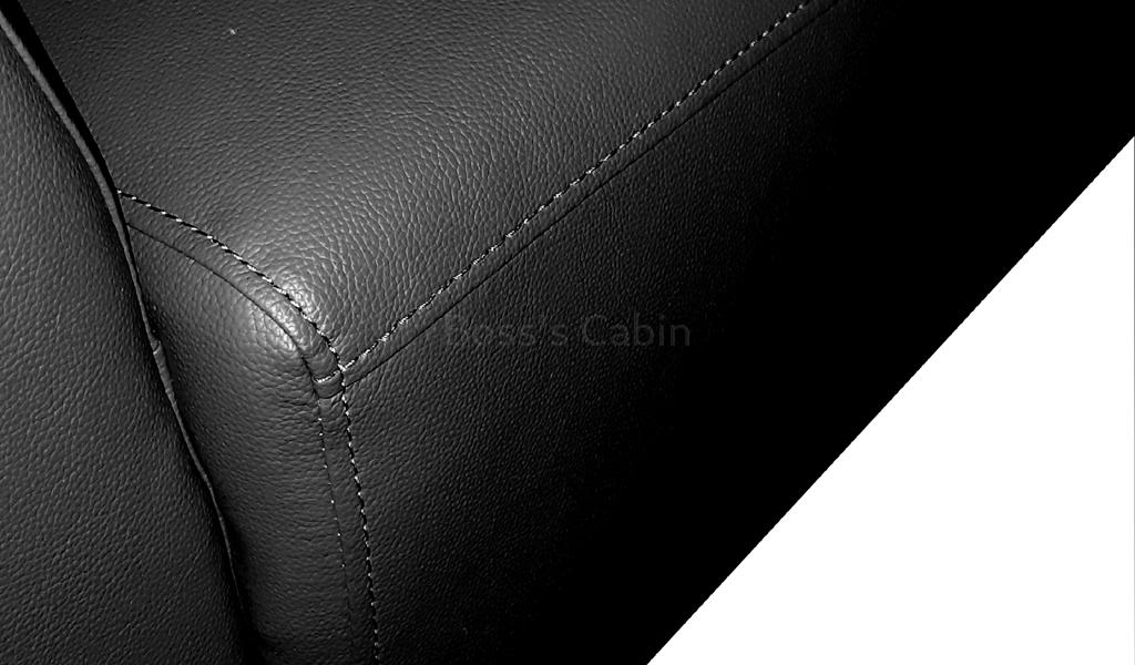 This contemporary office sofa looks best in black leather as seen in the picture.