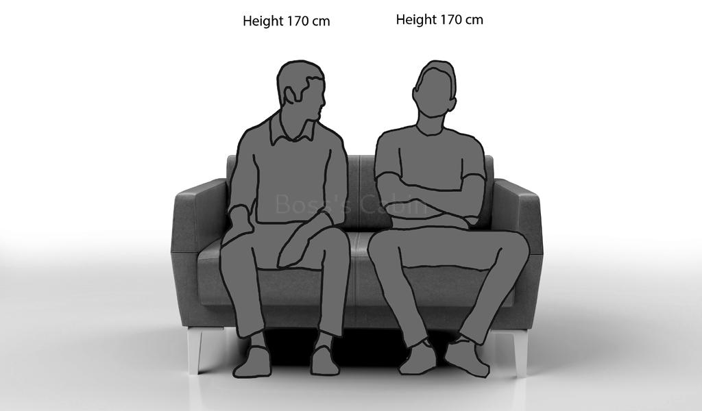 A compact and contemporary two seater office sofa that can fit anywhere without taking up too much space and yet provide comfortable seating. Upholstered in black color artificial leather with multi-layer high density foam and solid wood/plywood Mortise & Tenon inner frame . Includes white color metal legs in powder coated finish. Suitable for small office cabins and waiting areas.