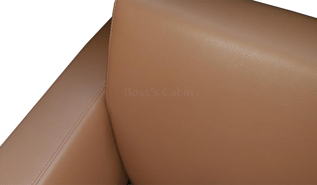 A compact, stylish and modern two seater sofa suitable for office cabins and waiting areas. Upholstered in tan leather it is also available in one and three seater configuration. Built with plywood and solid wood under structure with high density multi-layer foam and artificial leather for strength and durability this sofa can blend into all kinds of office interiors.