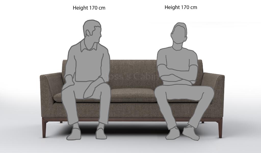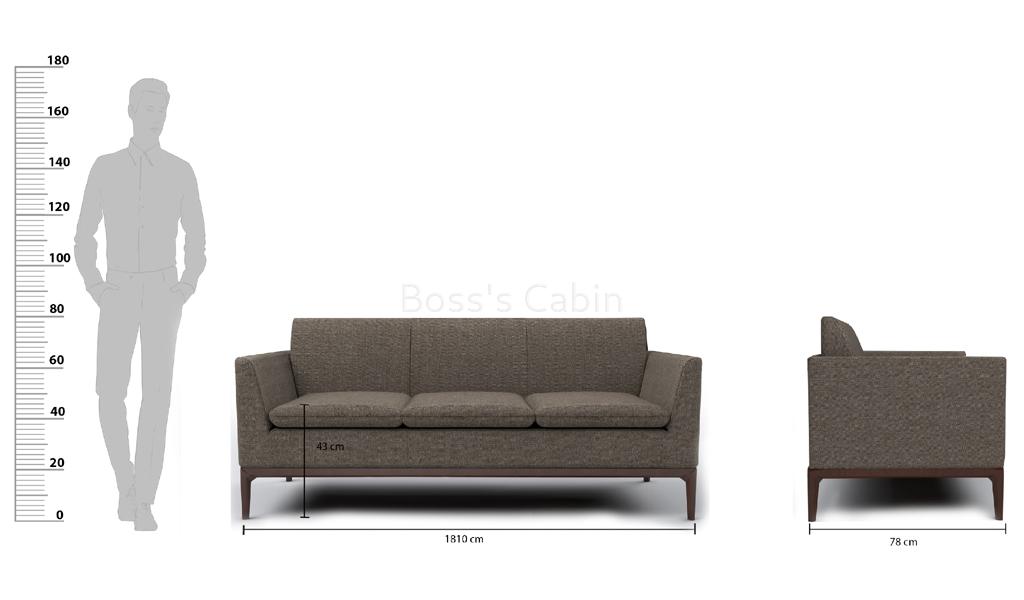 A beautifully designed, modern and compact three seater office sofa that adds effortless style to any contemporary space. Rich and textured grayish brown fabric upholstery, meticulous parallel stitches and polished solid wood legs with wooden inner structure. Available in one, two and three seater configurations. A great choice for office cabins and small waiting areas.