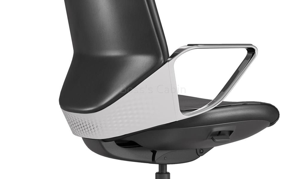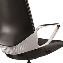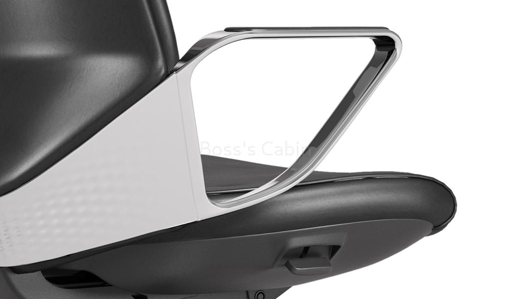 Monolithic wrap around armrests. Crafted in VFF polished aluminum alloy the diamond shaped armrests are made of the same material as cylinders of luxury cars with a fatigue life more than 100 times of standard material and 20% more corrosion resistance. The surface roughness value is no more than Ra0.05um. The armrest top is covered with genuine leather to give it a warm and soft feel along with added comfort.
