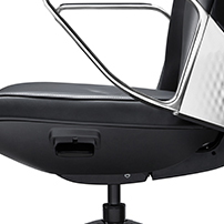 Cushioned seat with molded PP seat shell. The top, middle and rear part of the seat cushion is made up of 60N, 85N and 135N foams respectively. Different hardness of form combined with 15 degree sloping edge can effectively relieve pressure and withstand intense use. The seat is supported with a specially molded PP shell to match the flowing lines of the chair and to house the mechanism in order to preserve the overall outer aesthetics of the chair and to provide firm support.