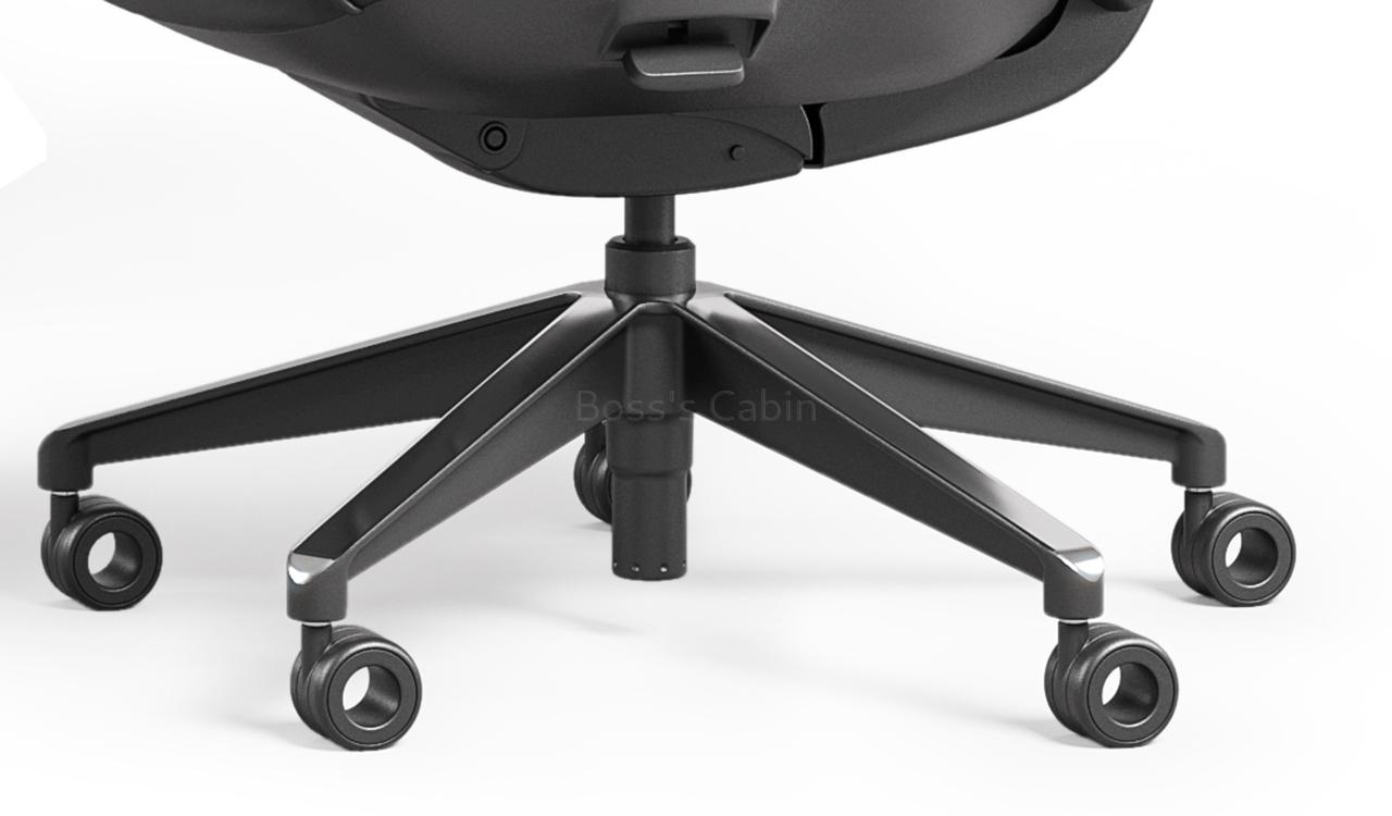 Five star VFF polished aluminum alloy base with hollow mute castors. The Atlas chair is fitted with heavy duty aluminum alloy base with specially designed hollow castors for smooth and soundless movement. The five star base is supported with a class four gas lift for smooth height adjustment.