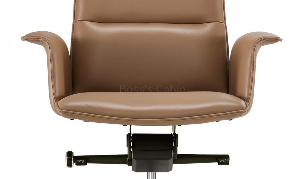 A stylish high back chair made with fine leather and state of the art ergonomics. Designed with long, graceful lines and balanced proportions its minimalist profile is enhanced by its artistically styled, outward turned, leather clad armrests. Adjust from 106 to 121 degree with a four level synchronized tilt mechanism for seamless switching between work, focus and nap. A top choice for a modern workspace.