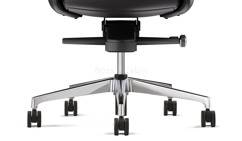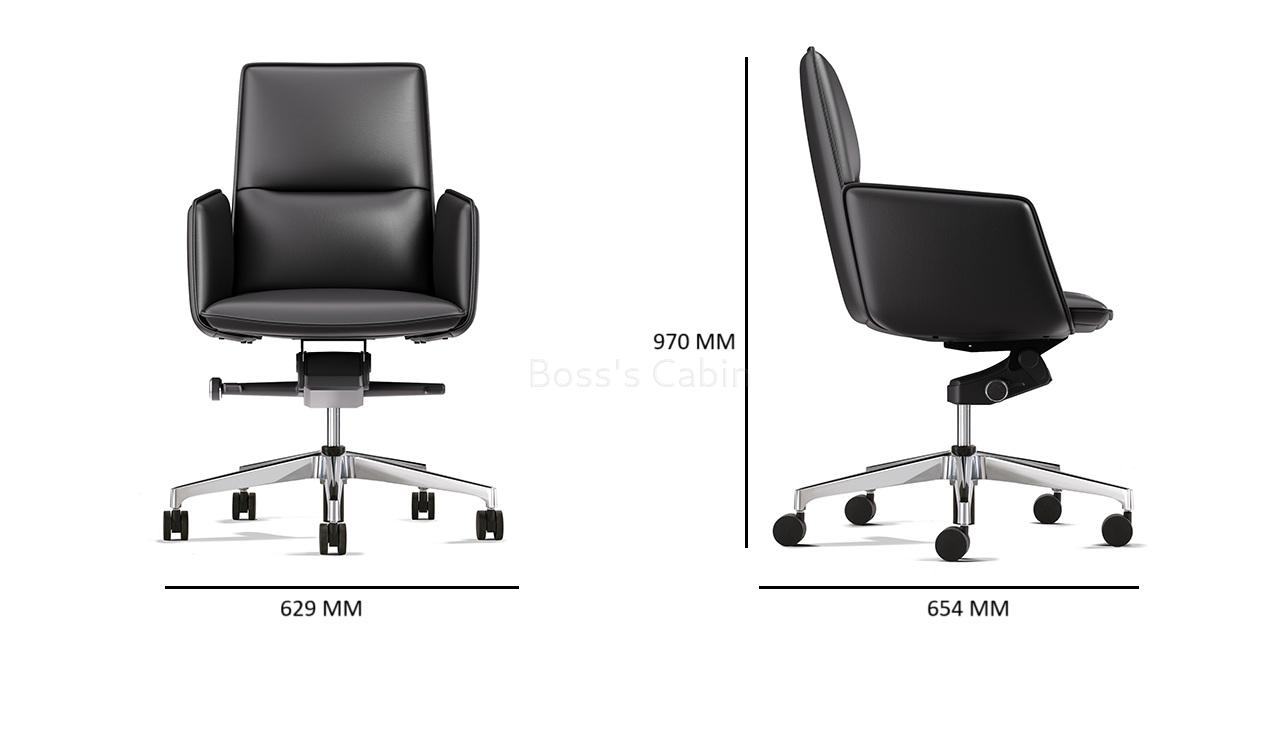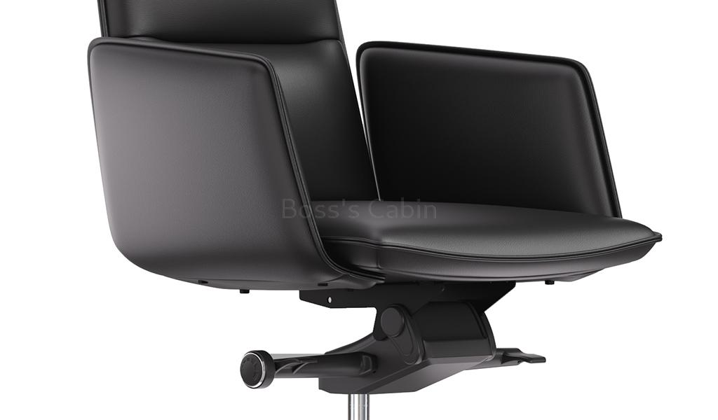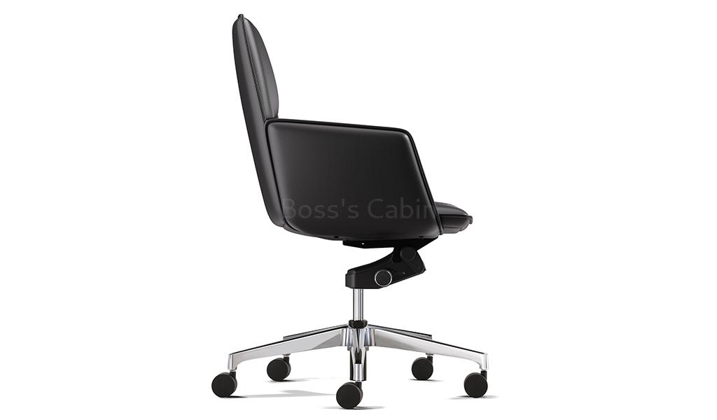 A stylish medium back chair made with fine leather and state of the art ergonomics. Designed with long, graceful lines and balanced proportions its minimalist profile is enhanced by its artistically styled slim leather armrests. Adjust from 106 to 121 degree with a four level synchronized tilt mechanism for seamless switching between work, focus and nap. Best choice for boardrooms and visitor chair.