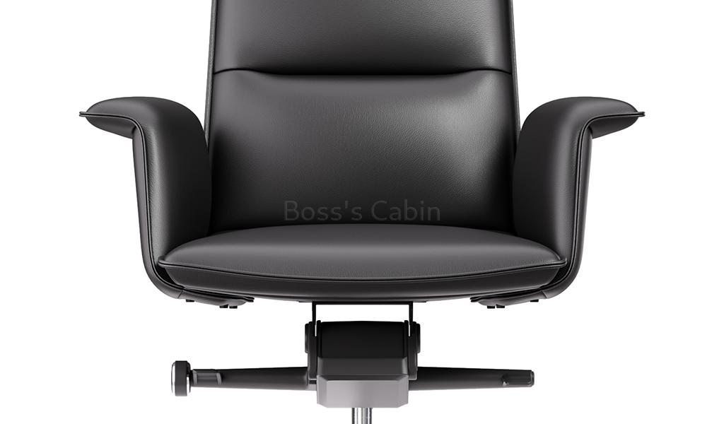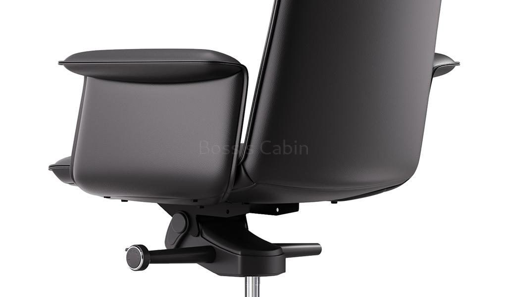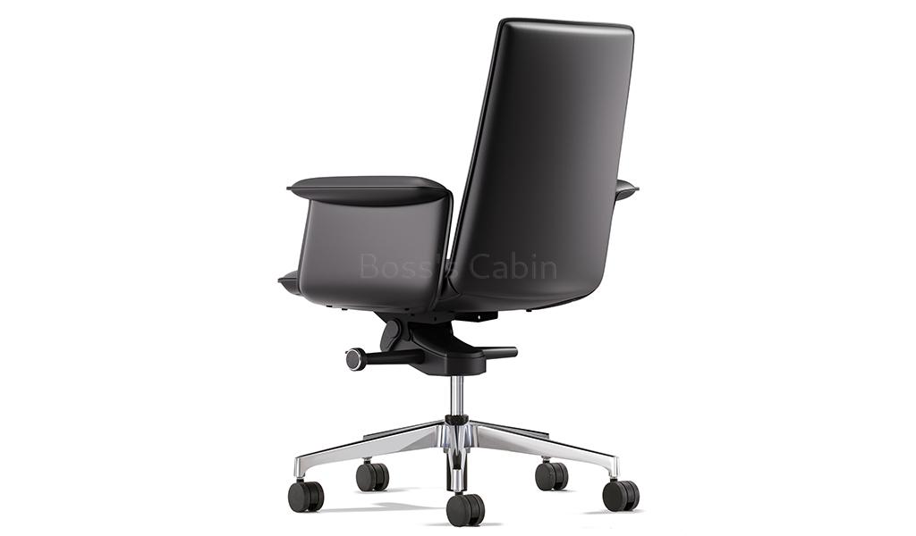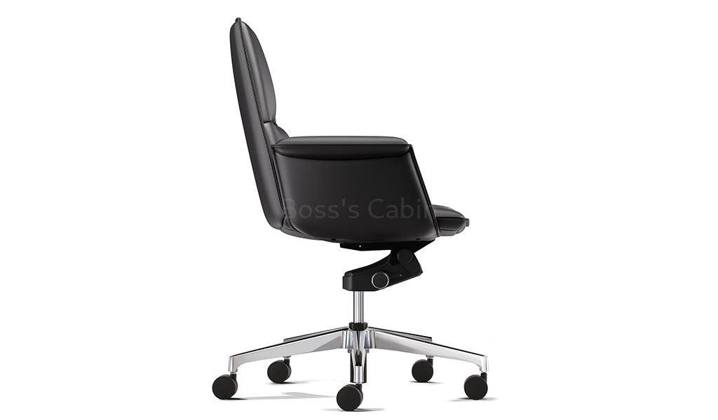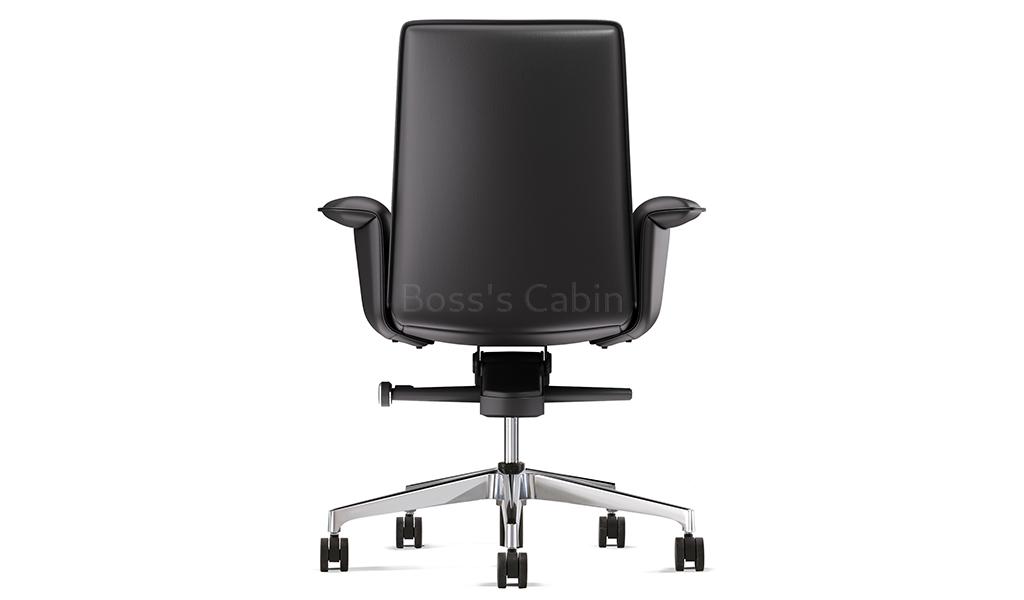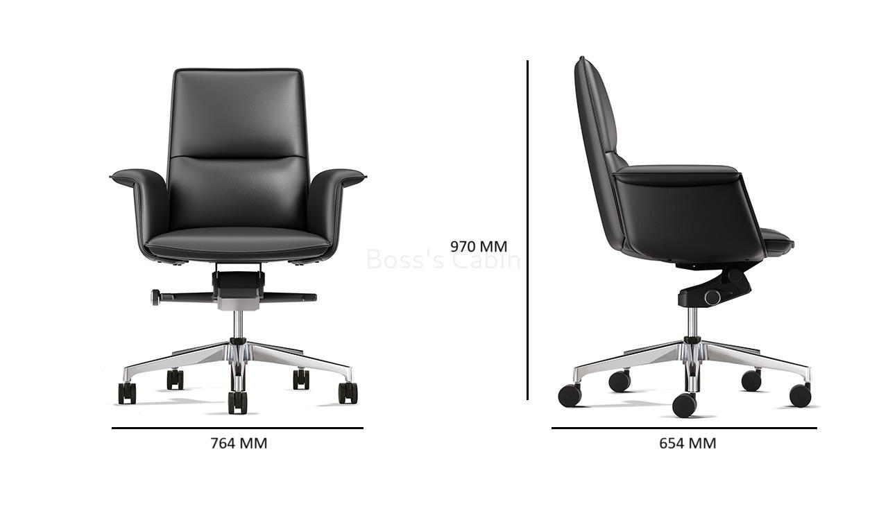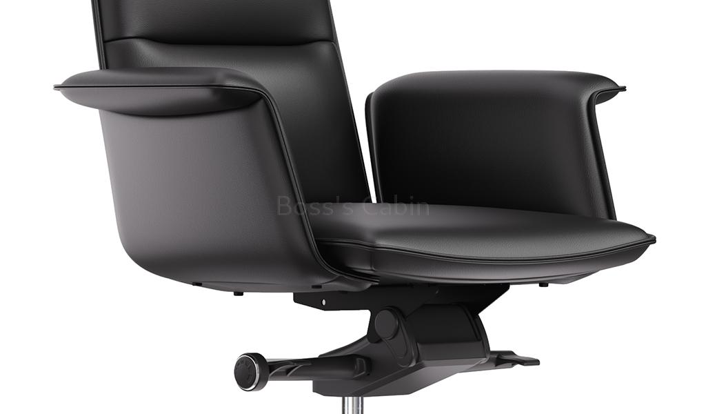A stylish medium back chair made with fine leather and state of the art ergonomics. Designed with long, graceful lines and balanced proportions its minimalist profile is enhanced by its artistically styled everted leather clad armrests. Adjust from 106 to 121 degree with a four level knee tilt mechanism for seamless switching between work, focus and nap. A top choice for a modern workspace.