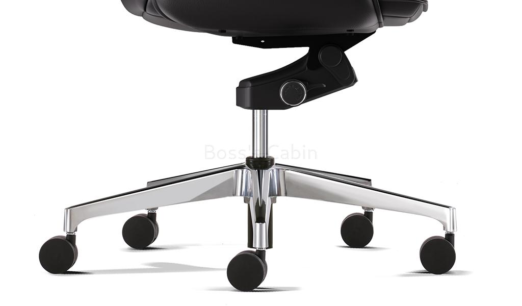 This is a premium general use high back office chair in Black leather with advanced ergonomic features. Contact surface in genuine leather, backside in water based PU leather. Recommended for intensive use 6 to 8 hours per day. Easy to operate high back multi-function office chair Premium leather upholstery with everted slim edge armrests. Knee tilt KTG mechanism and tilt tension control. Knee tilt mechanism helps keep proper balance between your torso and legs and provides superior tilting comfort. Multi-position locking. Allows you to lock the chair at four tilt positions. Pneumatic one touch seat height adjustment Heavy duty aluminum alloy base with nylon castors for easy mobility and lasting durability. Slim design, long and graceful lines and balanced proportions to complement a modern office.