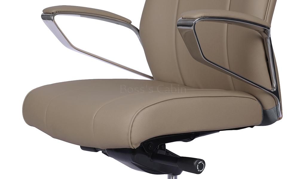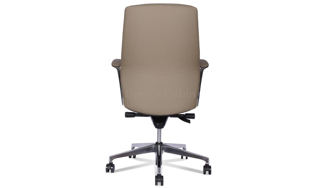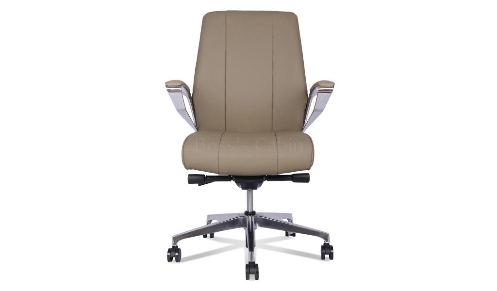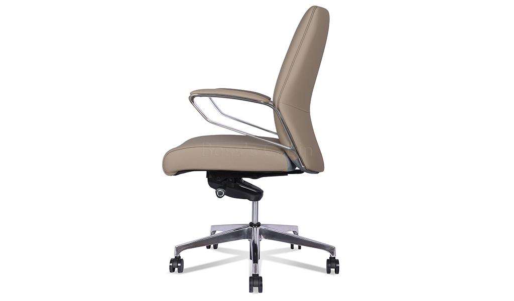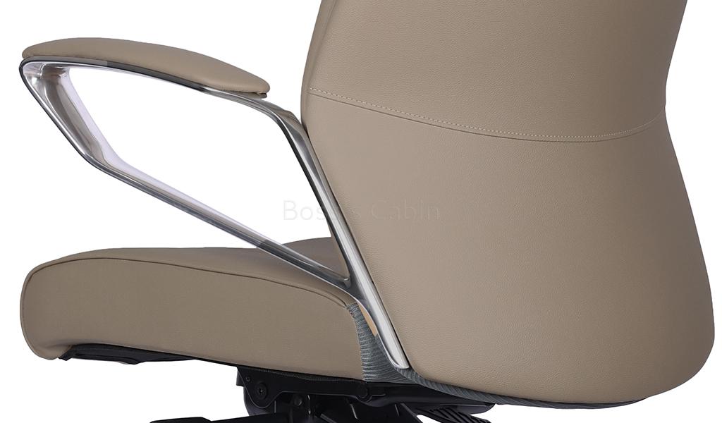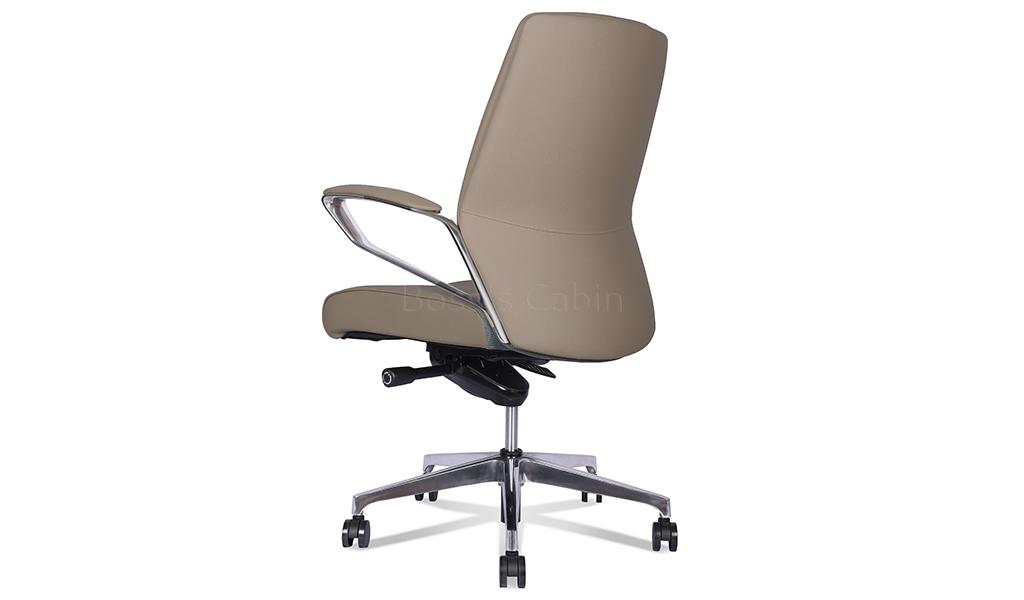 A medium back luxury office chair upholstered in rich water based artificial leather. Features and ergonomically shaped backrest, multi-layer molded foam seat, synchronized tilt mechanism with automatic tension control, 4 position locking, VFF polished aluminum alloy armrests with padding, class 4 gas lift and aluminum alloy five star base with PA castors. Part of the Calm series it is a perfect choice for a plush office.