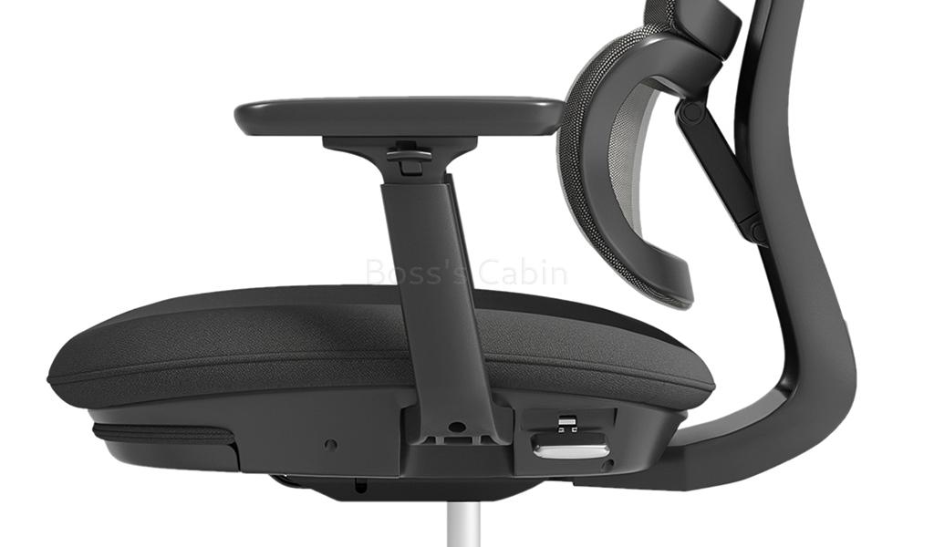Control by wire synchronized tilt mechanism. The H2 sports an advanced wire controlled synchro tilt mechanism that replaces the unseemly adjustment levers with compact switches on either side. Combined with the chair’s three point coordinated control system it ensures an optimum balance between the torso and the leg and includes a 4 position lock. The synchronized mechanism effectively distributes the strain evenly through out your lower body and helps maintain an ideal sitting posture.