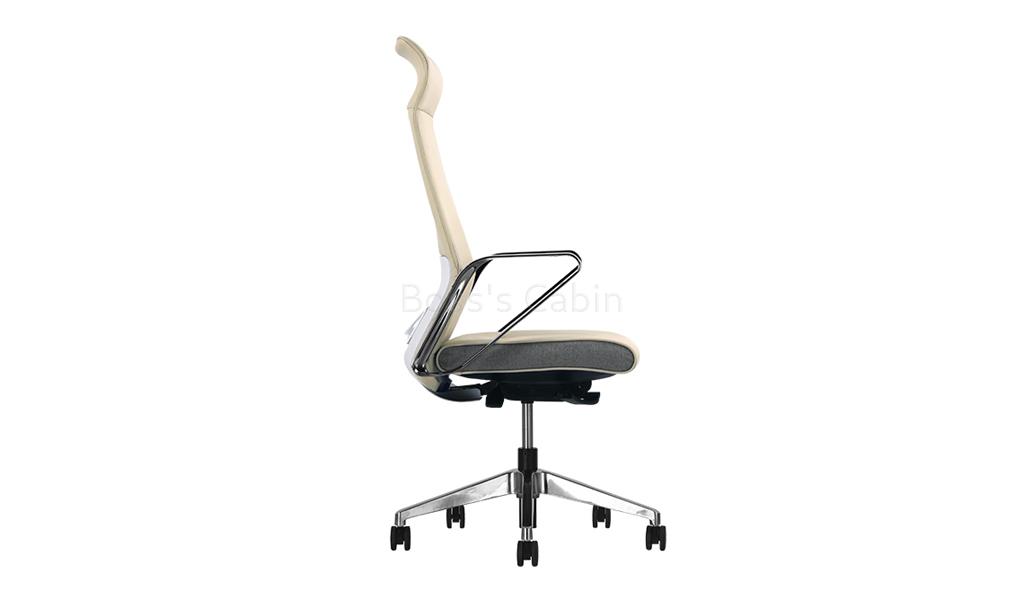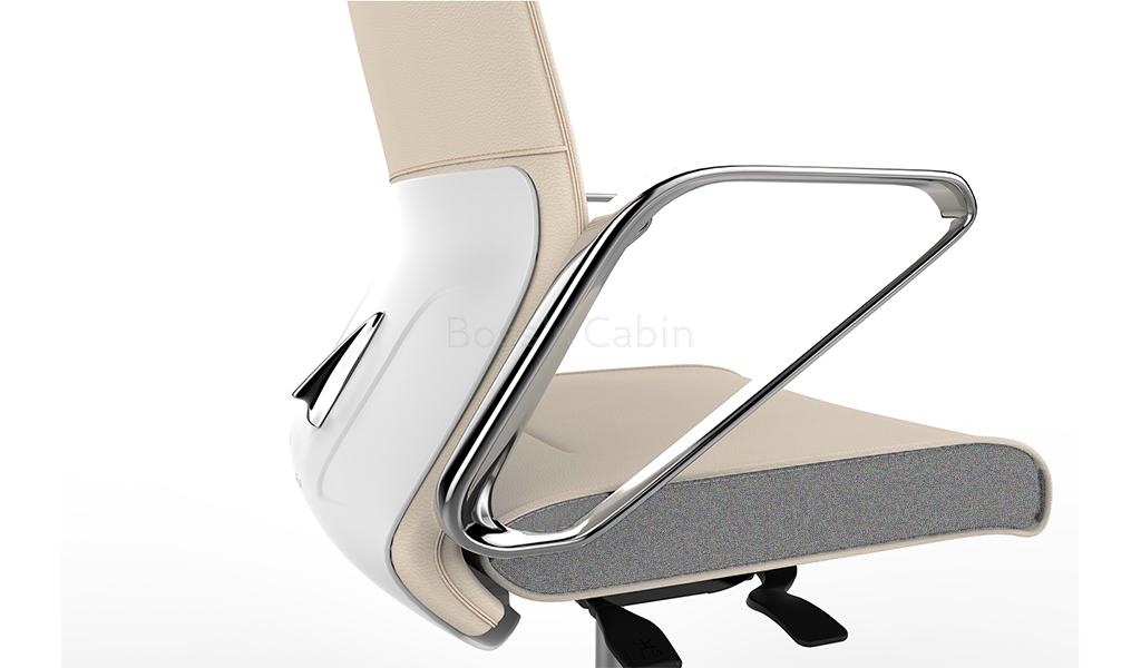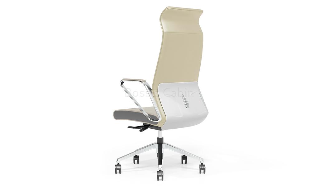 This is a premium general use office chair in off white leather with advanced ergonomic features. Recommended for intensive use 6 to 8 hours per day. Easy to operate high back multi-function office chair Premium leather upholstery with fabric trim and polished aluminum alloy arm rests. Synchronized mechanism and tilt tension control. Synchro tilt helps keep proper balance between your torso and legs so that neither has too much pressure when you sit for extended periods. Multi-position locking. Allows you to lock the chair at whatever tilt position you prefer depending on the task. Pneumatic one touch seat height adjustment Heavy duty aluminum alloy base with nylon castors for easy mobility and lasting durability. Adjustable lumbar support feature, supports your lower back and natural curve of your spine. Seat depth adjustment with seat slide function.