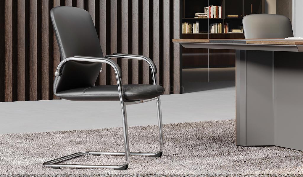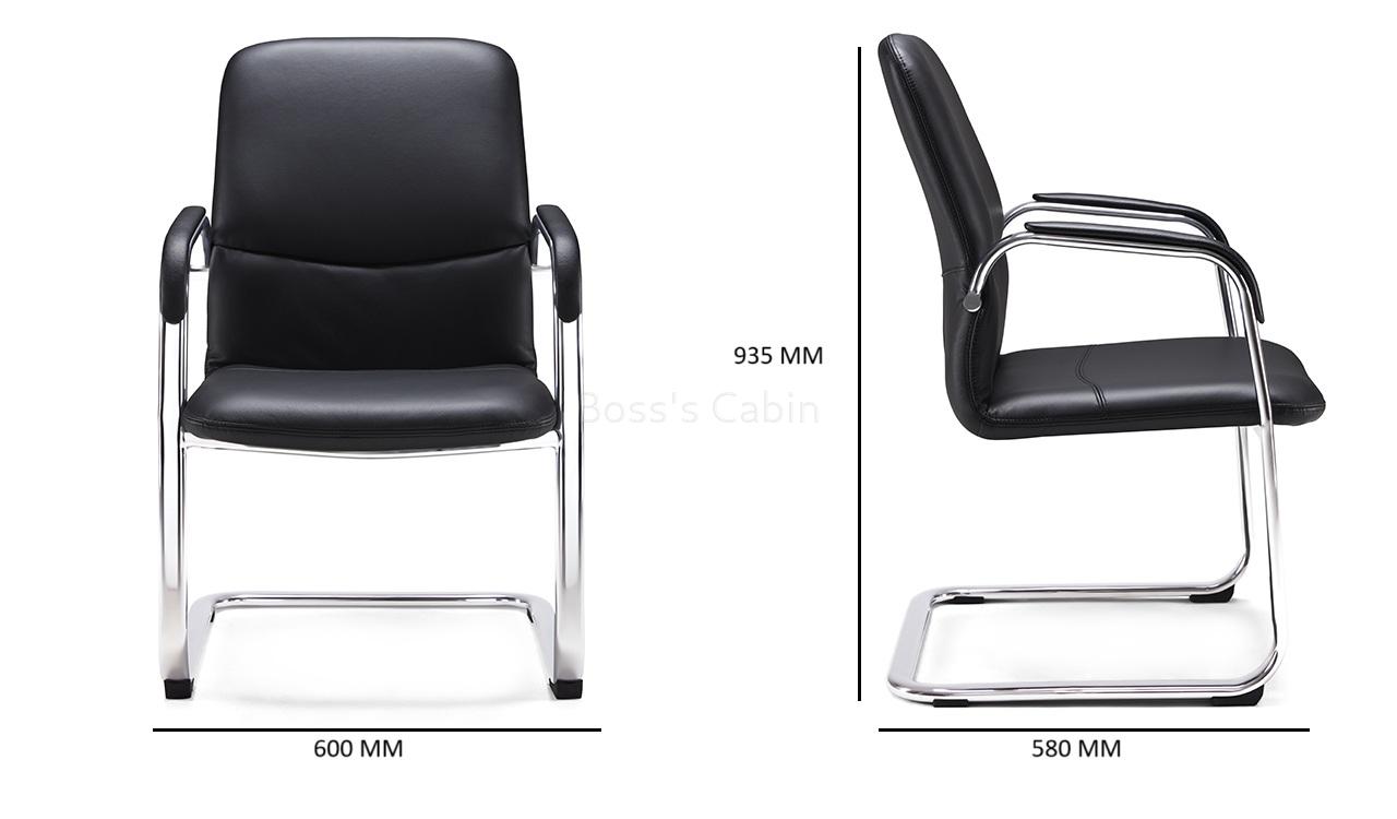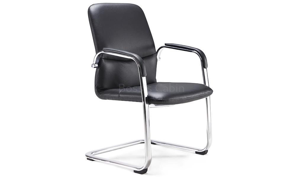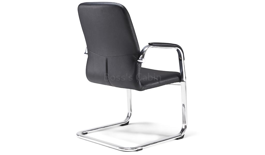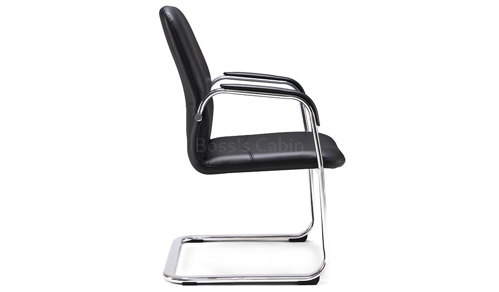 A sleek & modern fixed base visitor chair made with fine artificial leather and sled base. Designed with a ergonomically shaped back rest the chair has chrome plated frame and base. The armrests are covered with soft leather upholstered padding for added comfort. An ideal choice as a visitors chair.