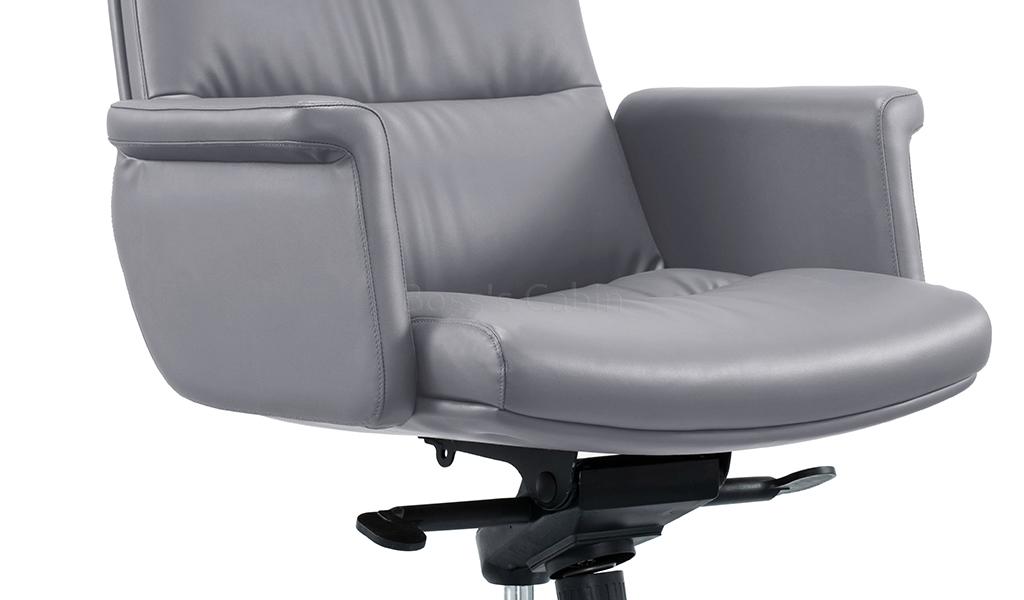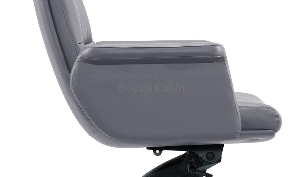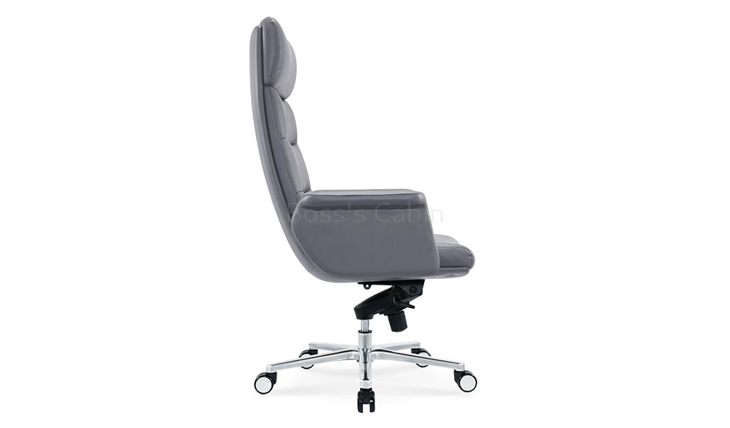 The Omega high-back office chair is upholstered in Dove gray water-based PU leather, offering a refined, eco-friendly finish. Built on a sturdy wooden understructure, it features an extra-thick cushioned seat and back for superior comfort. Fully upholstered armrests flare outward at the top, enhancing both arm support and seating space. Equipped with a synchronized tilt mechanism, pneumatic height adjustment and a reinforced aluminum alloy base with smooth nylon castors, it delivers both comfort and lasting performance. View all options from the Omega series