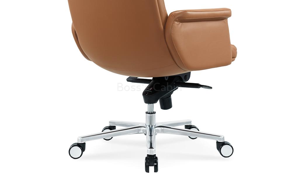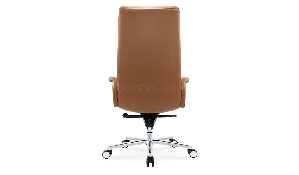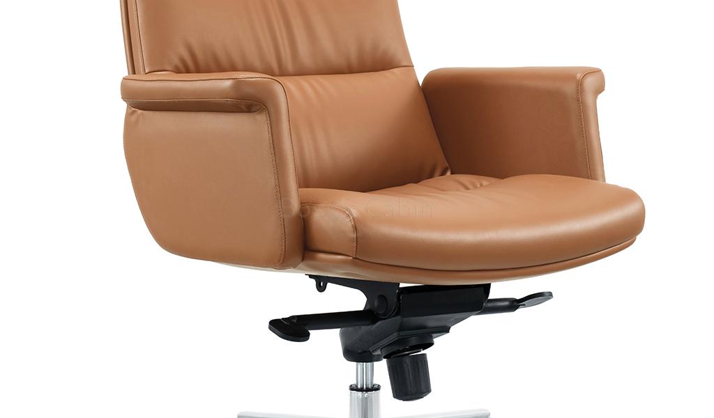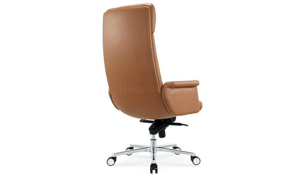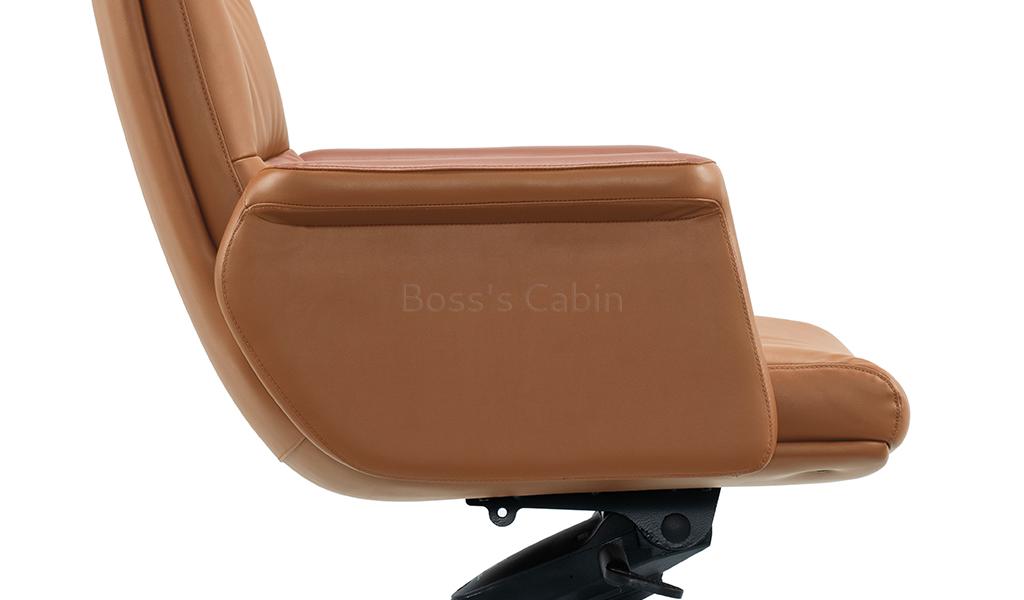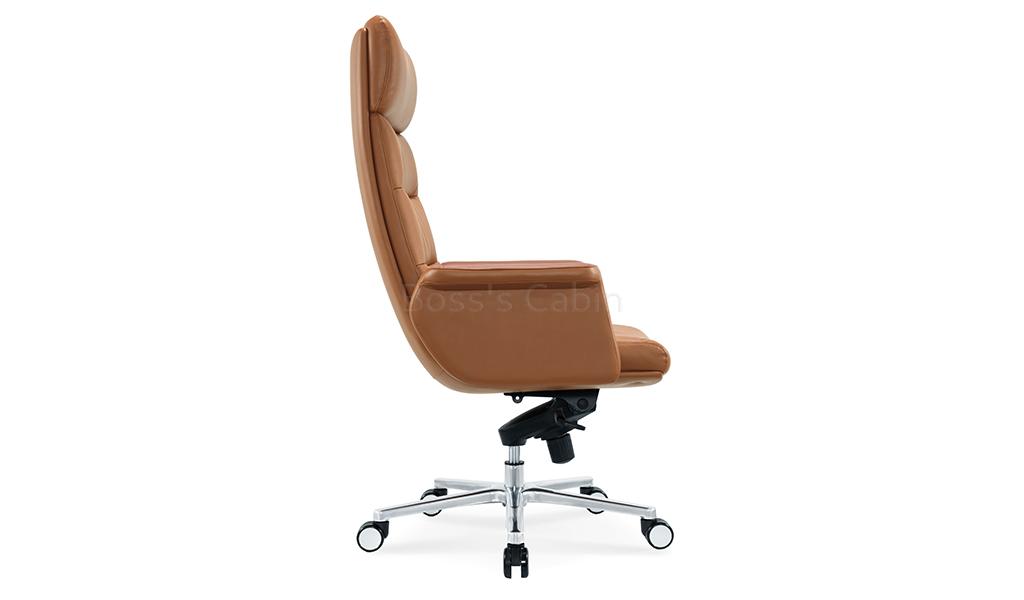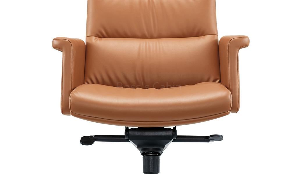 The Omega high-back office chair is upholstered in Golden tan water-based PU leather, offering a refined, eco-friendly finish. Built on a sturdy wooden understructure, it features an extra-thick cushioned seat and back for superior comfort. Fully upholstered armrests flare outward at the top, enhancing both arm support and seating space. Equipped with a synchronized tilt mechanism, pneumatic height adjustment and a reinforced aluminum alloy base with smooth nylon castors, it delivers both comfort and lasting performance. View all options from the Omega series