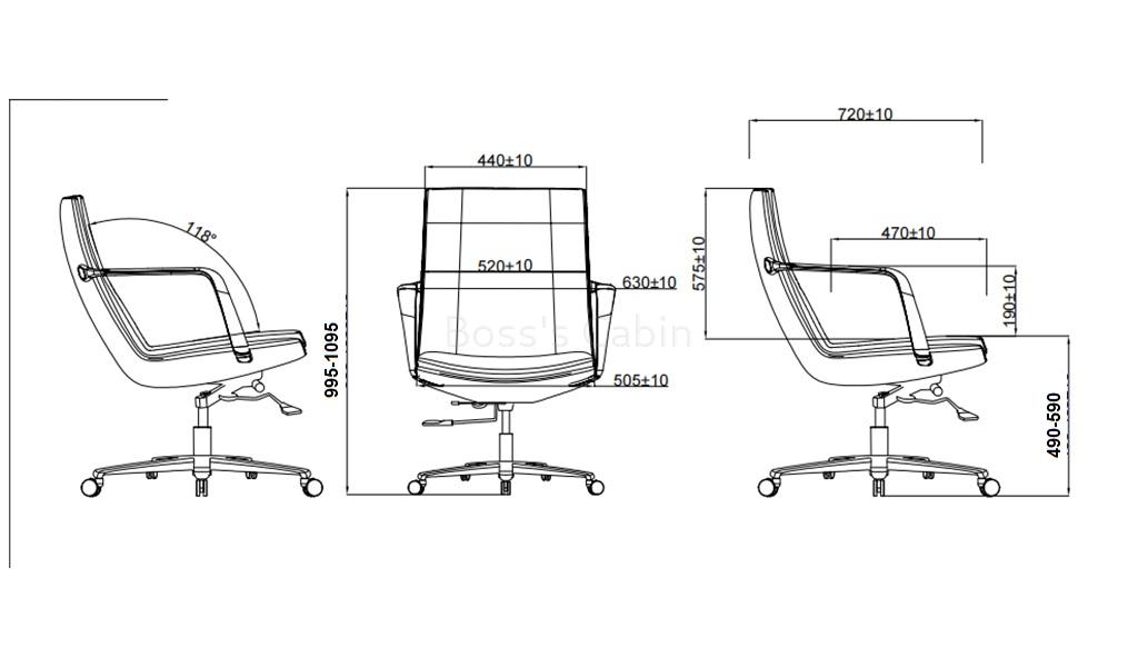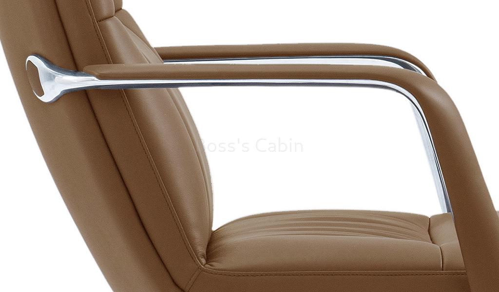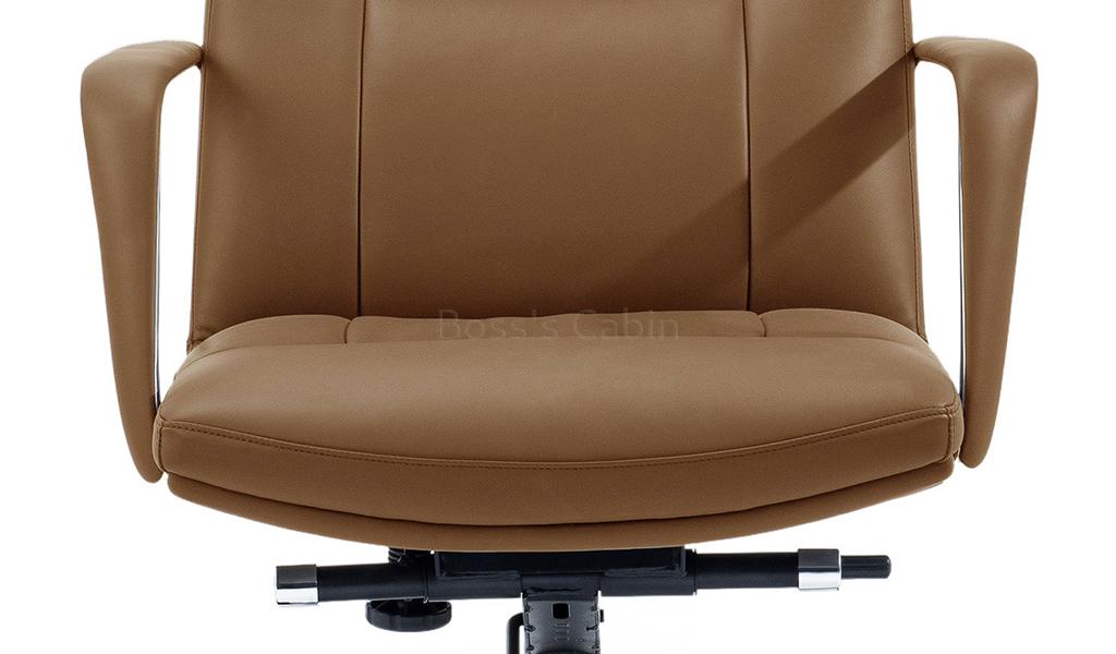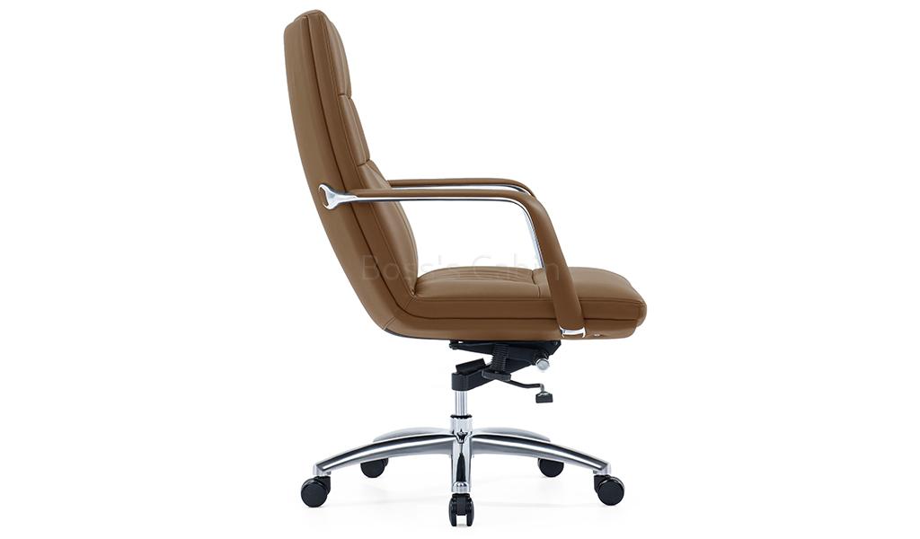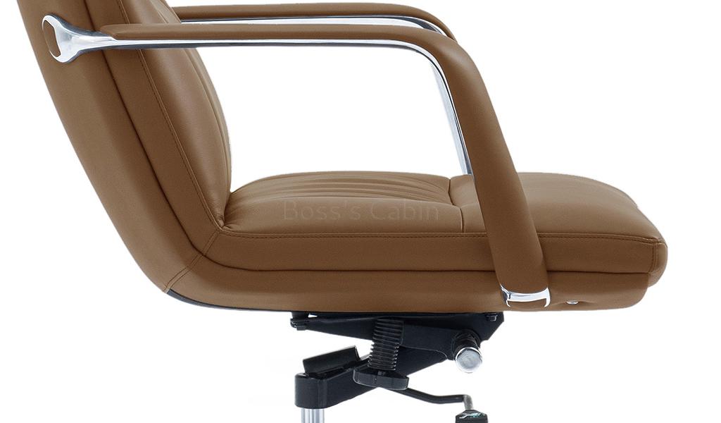 A premium medium back general use executive chair in Tawny brown artificial leather with advanced ergonomic features. Recommended for intensive use 6 to 8 hours per day. Easy to operate high back multi-function office chair. Bent plywood inner structure. Soft artificial PU leather upholstery with high density foam. Synchronized tilt mechanism and tilt tension control. Fully upholstered armrests with foam padding. Pneumatic one touch seat height adjustment Heavy duty aluminum alloy base with nylon castors for easy mobility and lasting durability. Curved  back rest design. Curved shape provides extra seating space and comfort.