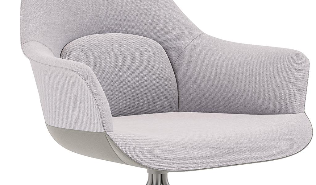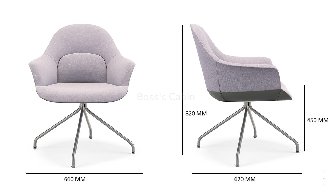 A multi-purpose chair in premium fabric with fixed metal base. Sleek four star fixed base in lustrous gray powder coated finish. Three dimensional lumbar support design with a large size lumbar area and enclosed arms for optimum sitting posture and comfort. Ideal for visitors and meeting rooms.