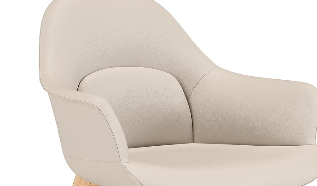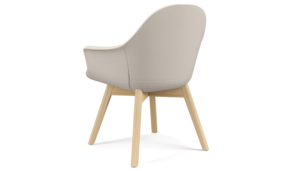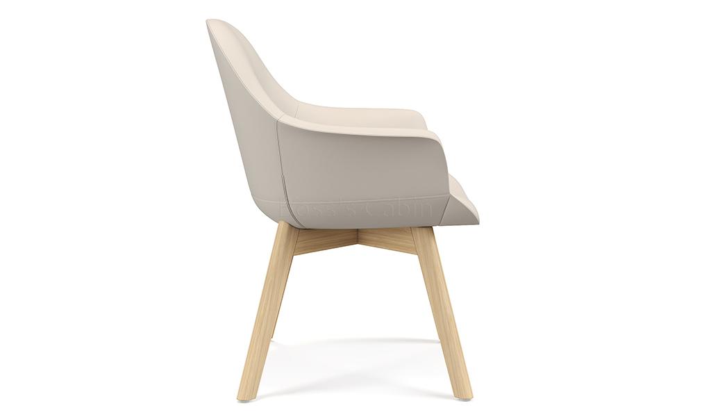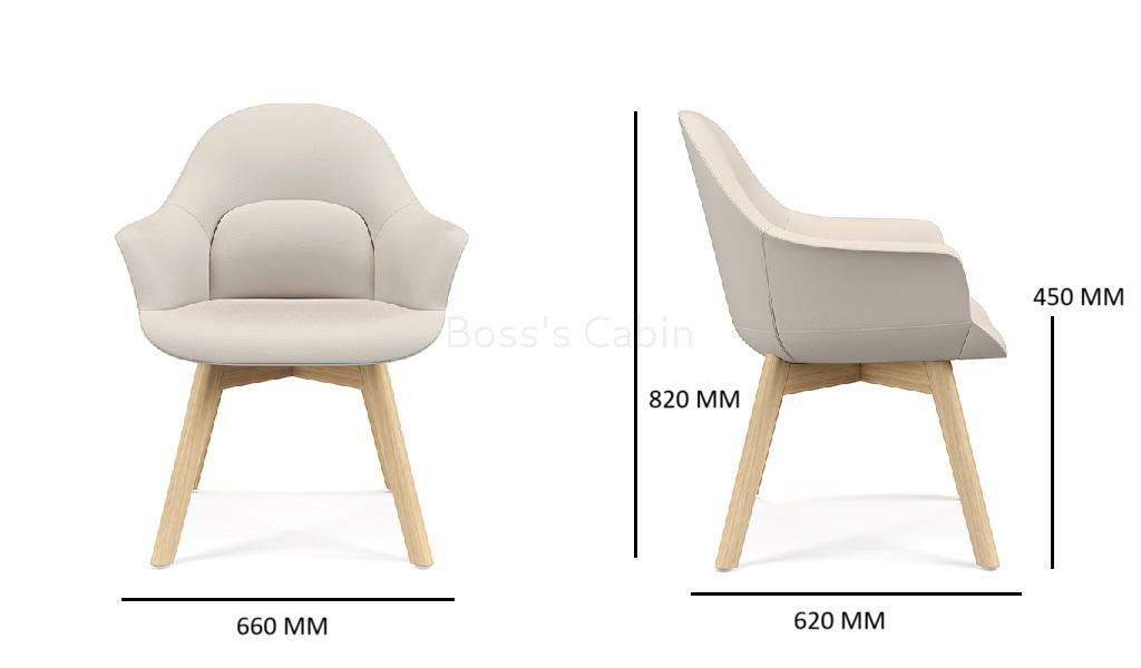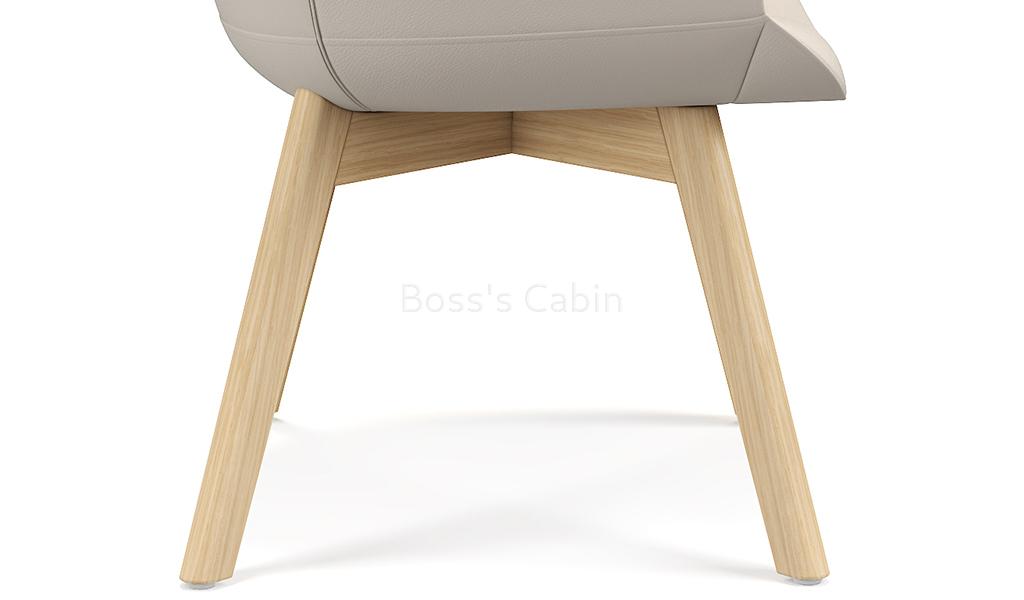 A multi-purpose chair in premium EPU leather and fixed base. Solid oak wood four leg base with matt lacquered finish. Three dimensional lumbar support design with a large size lumbar area and enclosed arms for optimum sitting posture and comfort. Ideal for visitors, meeting rooms lounges etc.