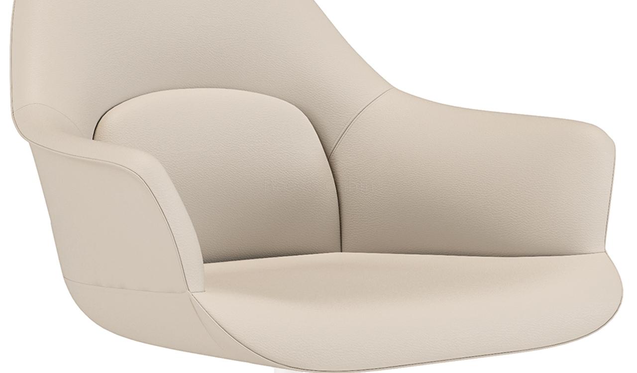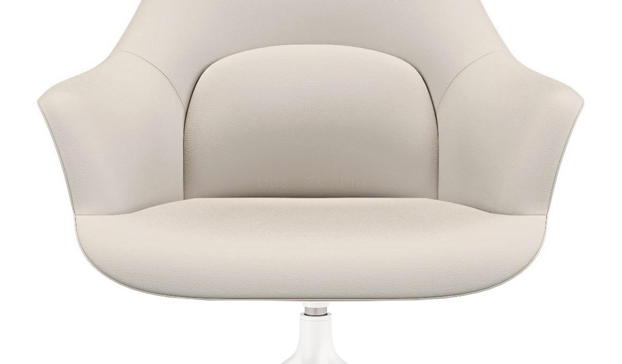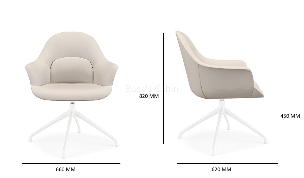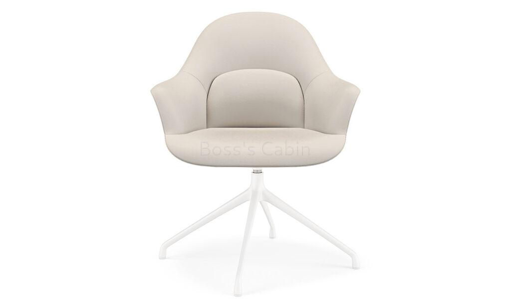 A multi-purpose chair in premium EPU leather with revolving function. Sleek four star fixed base in lustrous powder coated finish. Three dimensional lumbar support design with a large size lumbar area and enclosed arms for optimum sitting posture and comfort. Ideal for visitors and meeting rooms.