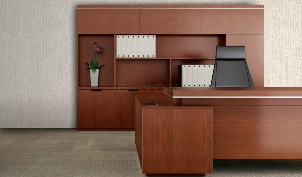 This modern 8 feet executive table with a side credenza is suitable for cabins of 150 sft or more.