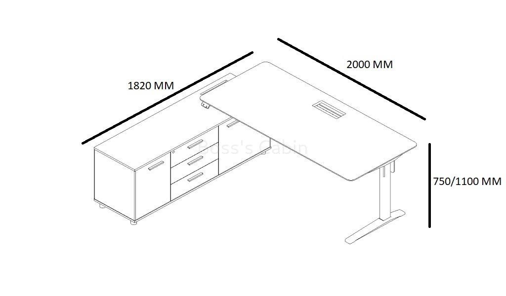 A medium sized executive desk with motorized height adjustment function. Designed with a side cabinet and inbuilt wire management it is a perfect choice for the dynamic CEO, architect or engineer who likes to work standing up.
