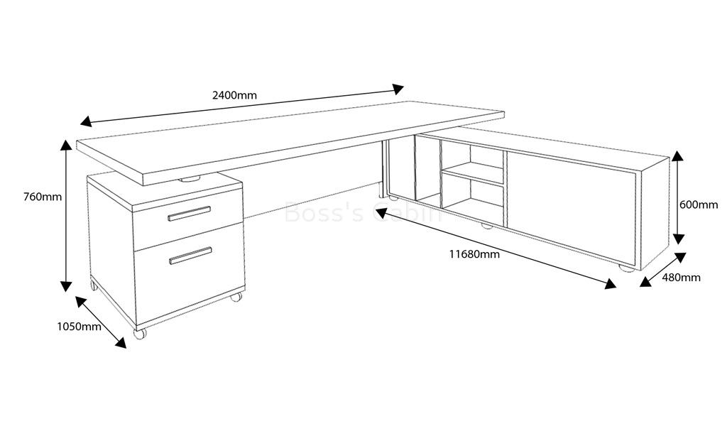 A spacious 8 feet table with side cabinet best suited for office cabin of 200 sft or more