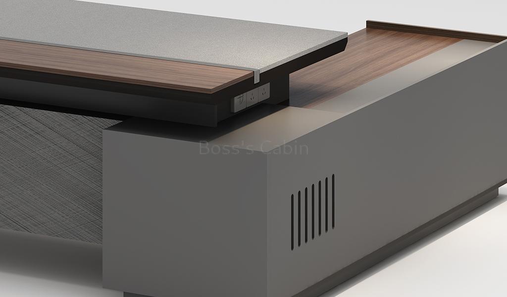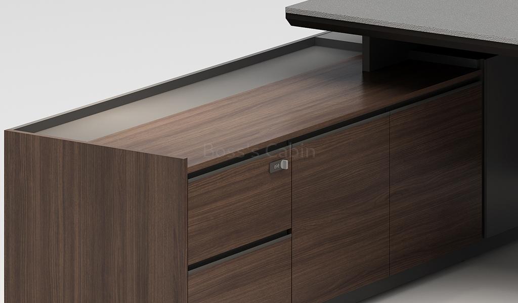 Part of the Nexa series this elegant 8 feet width office desk comes with side cabinet. It is best suited for large cabins of 200 sft and upward.