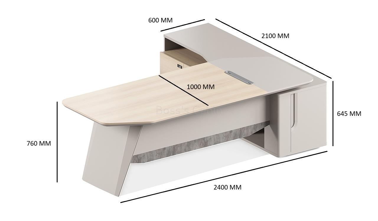 Office desk in 8 feet width with storage cabinet made with environment grade engineered wood and pearwood laminate. The E1 grade MDF is a highly durable material and a world standard for premium office furniture while the laminate is from our carefully selected range of premium laminates with consistent color and grain structure.