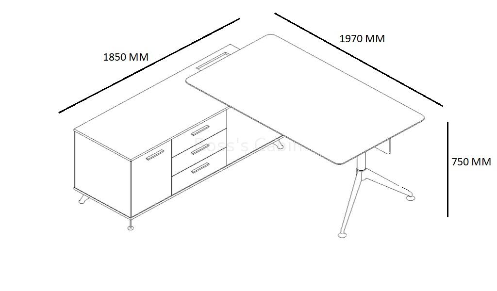 - 1970 W x 1850 D x 750 H mm