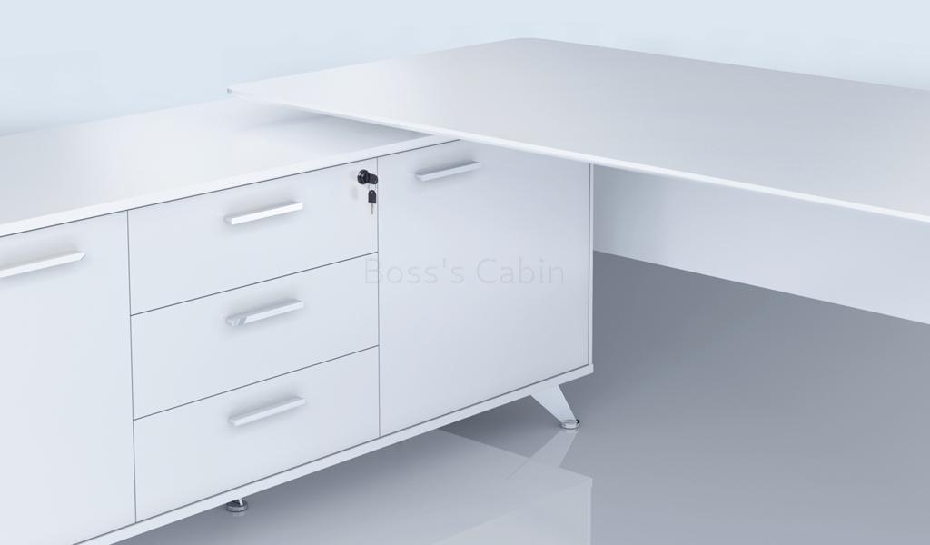 ‘Sharp’ 6.5 Feet White Office Table With Side Cabinet