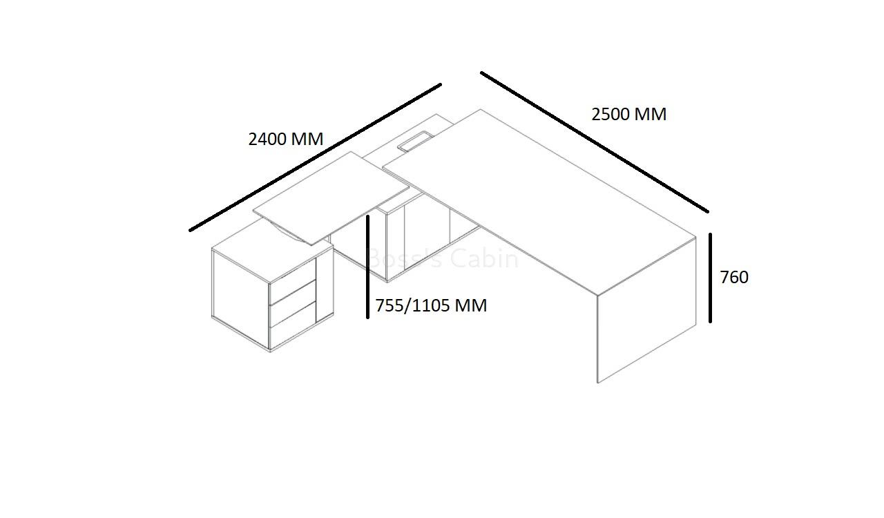 - 2500 W x 2440 D x 755/1105 H mm