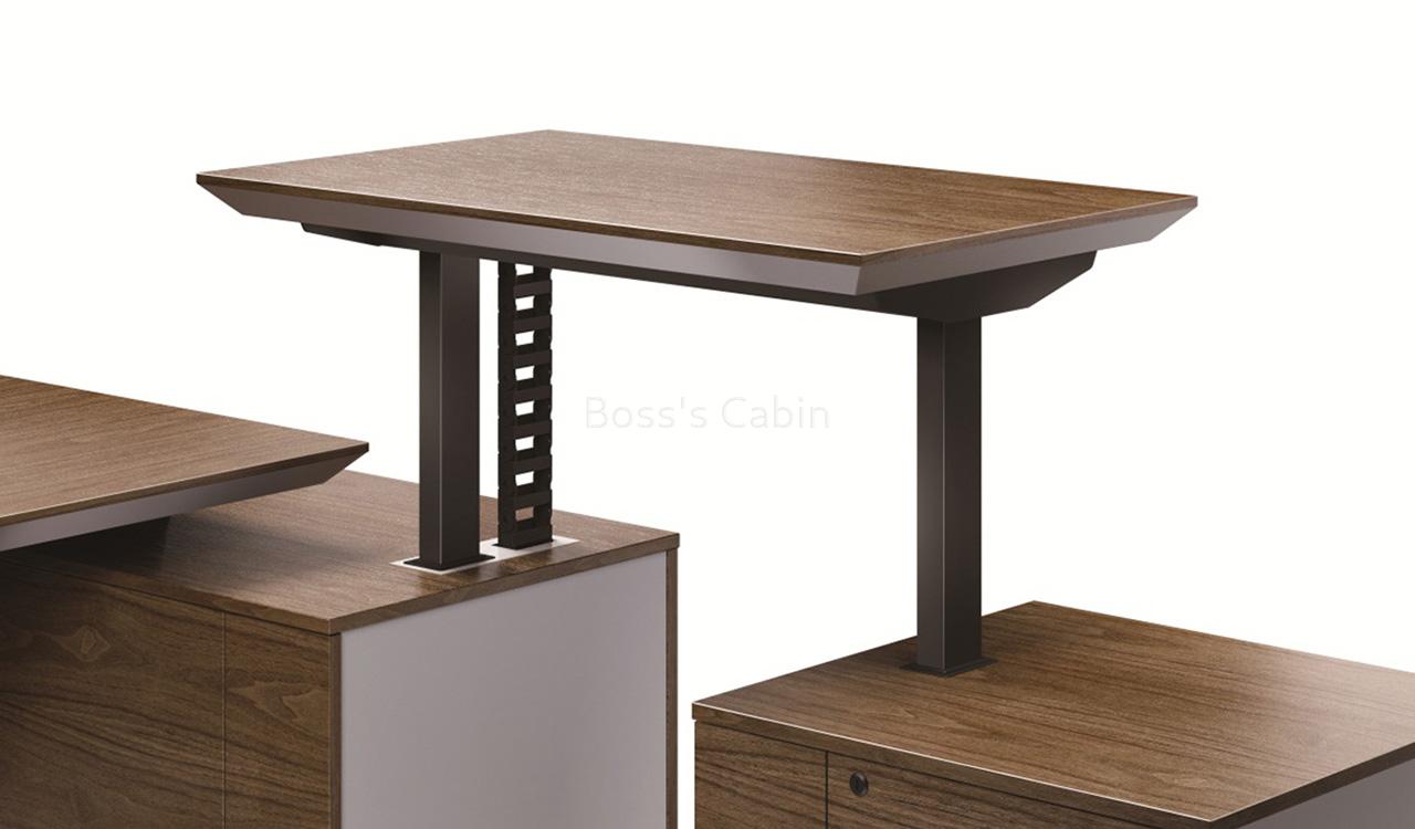 A large table  this desk is great for the energetic person in you who likes to be up on the feet while working. The side return comes with a electric height adjustment mechanism so that you have the option to stand up and work.