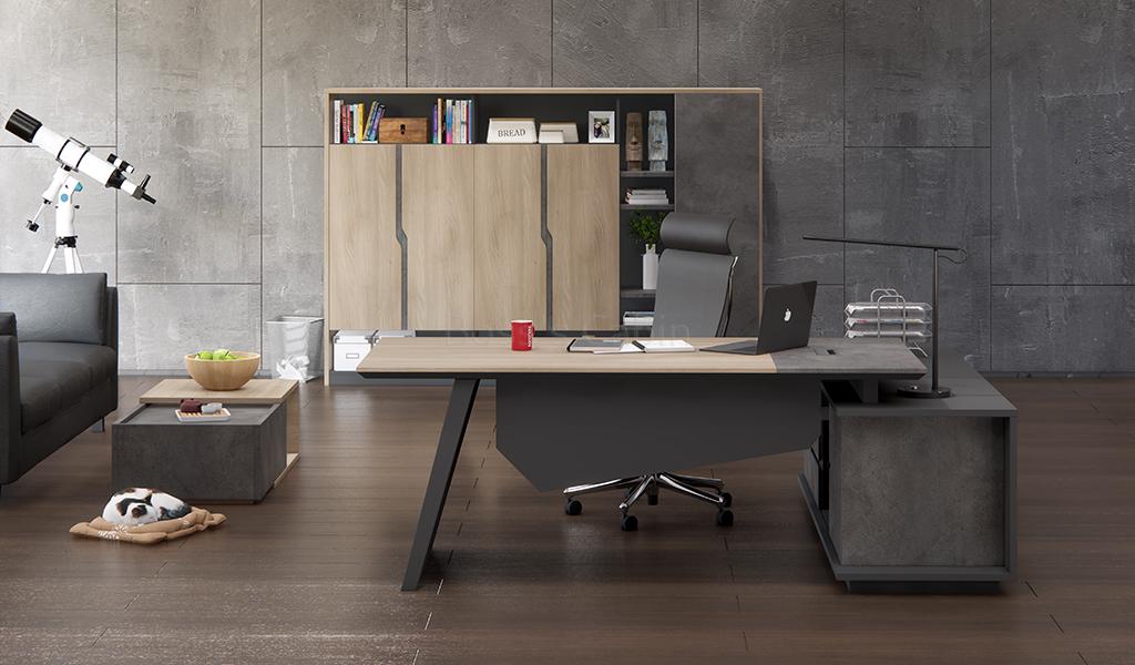This 6.5 feet stylish office table looks best in its original Akazie oak wood, rock gray and carbon gray combination as seen in the picture.
