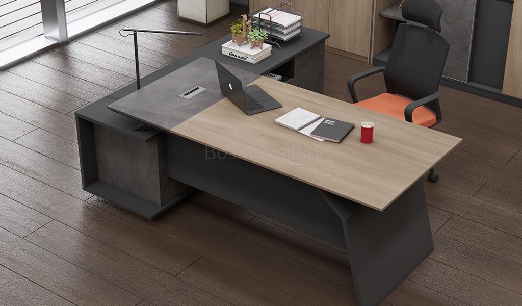 Office desk in 7 feet width with storage cabinet made with environment grade engineered wood and walnut laminate. The E1 grade MDF is a highly durable material and a world standard for premium office furniture while the walnut laminate is from our carefully selected range of premium laminates with consistent color and grain structure.