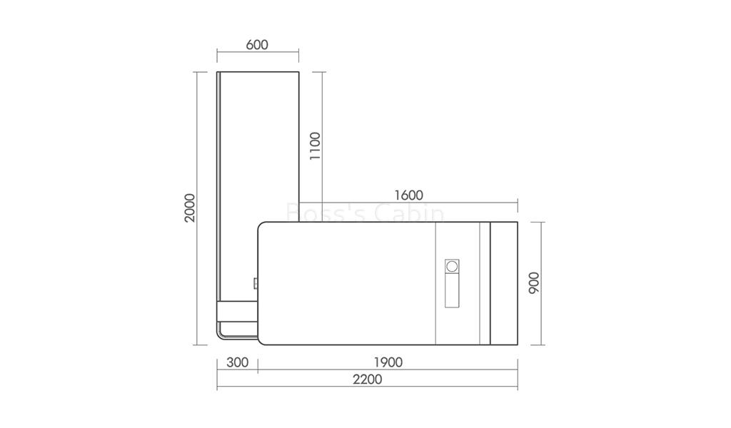 - 2200 W x 2000 D x 760 H mm