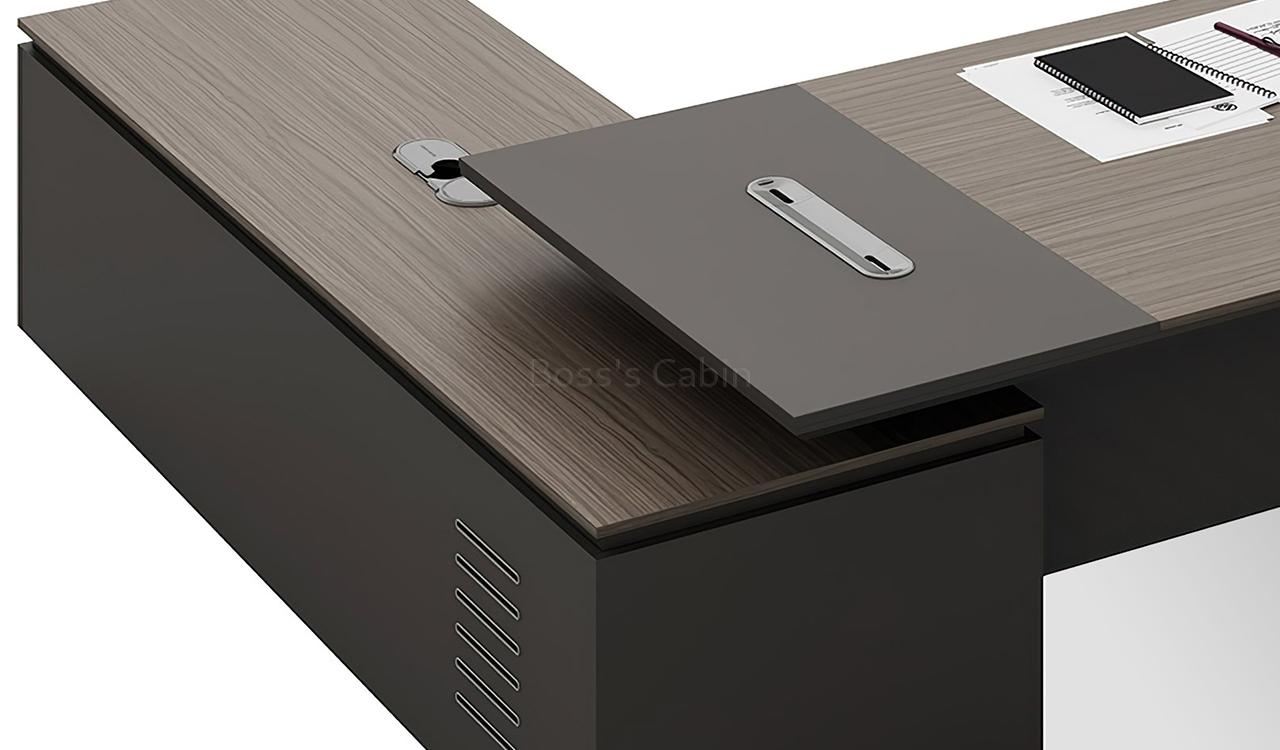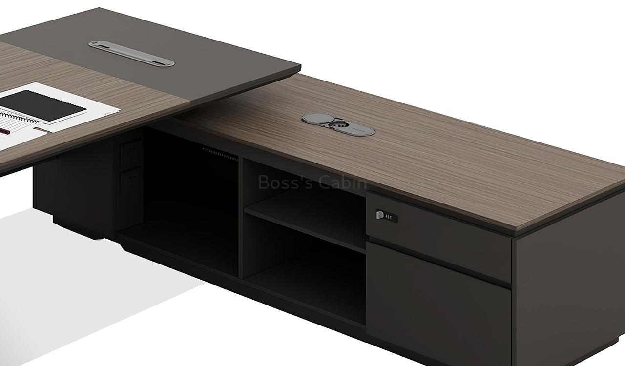 Part of the Vistra series this elegant 8 feet width office desk comes with side cabinet. It is best suited for large cabins of 150 sft and upward.