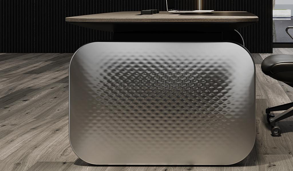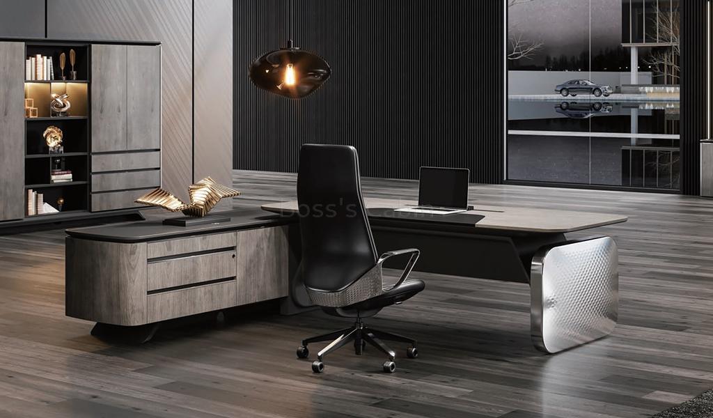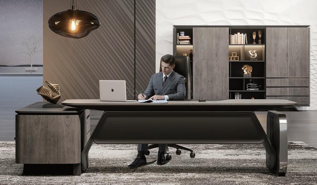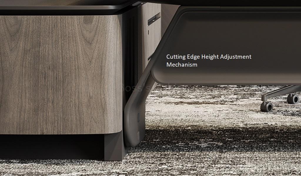 The 8 feet office desk from our flagship Atlas Series, is an embodiment of intelligent parametric design, luxurious finish, and precision engineering. Crafted from rich Black American Walnut veneer, meteor gray lacquer, and architectural-grade aluminum alloy, it seamlessly blends form and function. Featuring a gesture-controlled height adjustment mechanism, integrated multi-port power track, wireless mobile charging station, and a fingerprint lock, this desk with a custom designed lifting mechanism, delivers cutting-edge technology in a stunning, modern silhouette—the ultimate choice for a plush, contemporary office. View live video.