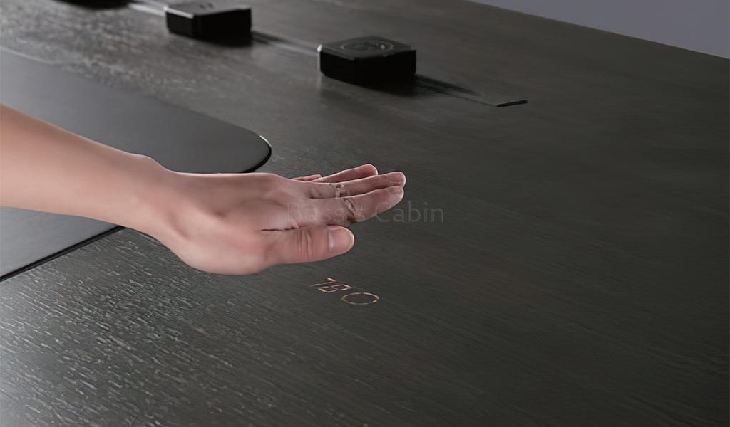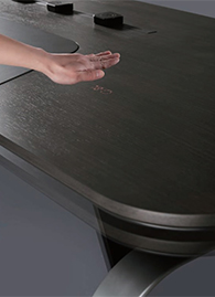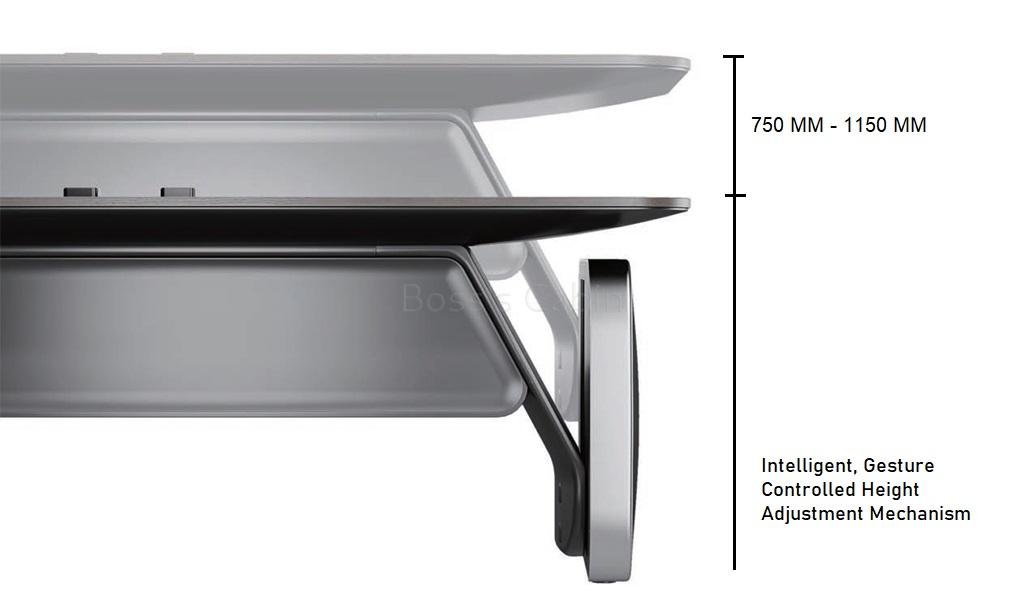 Gesture Control Height Adjustment – The Atlas desk sports a first of its kind gesture controlled height adjustment mechanism that is specially made and integrated in the design of the table with a digitally projected display on the desktop. A wave of your hand over the desktop can control the height of the table. Additionally included is a remote control for the purpose.