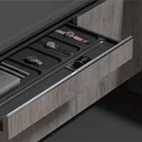 The design of the Atlas desk was inspired by a desire to excel and in doing so cut no corners and leave no stone unturned. This flagship model of ours was thus conceived and designed in collaboration with the acclaimed and award winning German design studio Form & Brand. The objective was to create a luxury office desk for the discerning by combining cutting edge technology, thoughtful design and luxurious finish. As a result the Atlas desk sports features that are first of its kind in any office furniture product ever made. Clad in rich North American Black walnut and meteor gray lacquer this beautiful masterpiece personifies our design philosophy of Function, Form, Feel, Flair and Flamboyance…in that order.