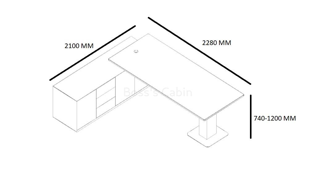 A 7.5 feet width luxury office desk with a height adjustable function suitable for medium size cabins of 150 sft and more.