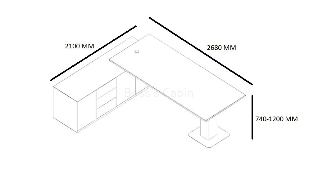 A 9 feet width contemporary office desk suitable for large office cabins of 200 sft and more.