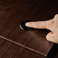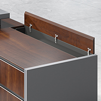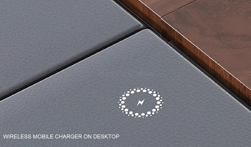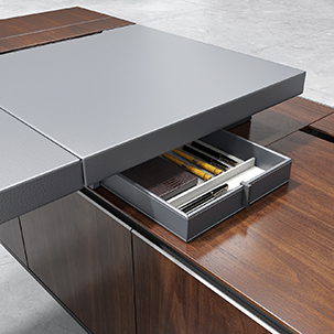 Integrated Wirless Charger – Our focus on luxurious finish is reflected in minute detailing that quietly enhance the richness and functionality of the desk. The concealed wireless charger embedded on the desktop is a case in point. The charger is discretely concealed under the leather pad that lets you charge your phone without any visible charging point in site.