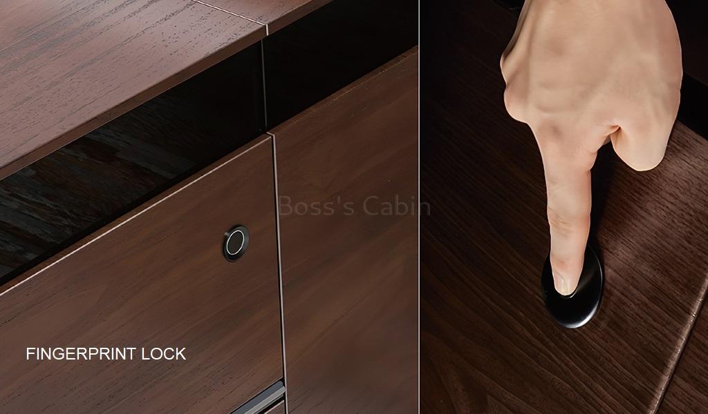 Biometric Smart Lock – The Larry desk side cabinet drawer is equipped with easy to set up and use finger print smart lock that provides fool proof privacy and security to your personal documents and files.