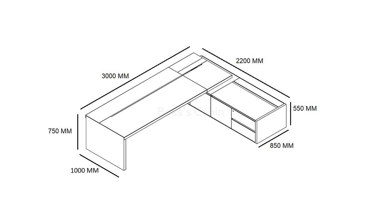 - 3000 W x 2200 D x 750 H mm