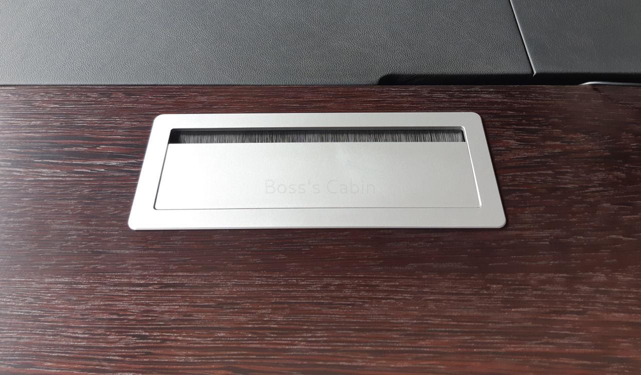 Part of our luxury office furniture range this 8 feet office table is finished in textured wenge veneer and black leather. It includes a side cabinet and inbuilt wire management provision with sockets for power and data connections. Designed by a Red-Dot award winning team of German architects, this solid wood finish table is crafted with the highest quality E1 rated MDF and veneer for lasting durability, natural feel and luxurious looks. It is part of the super premium Leading series from which you can choose an entire range of matching cabinets, larger tables, boardroom tables etc to create a complete office. Go to our catalog section to download the entire catalog.