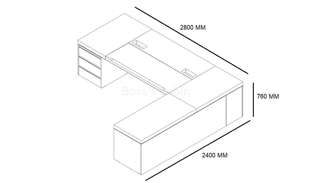 A large L shape 9 feet office table suitable for cabins of 200 sq feet and more.
