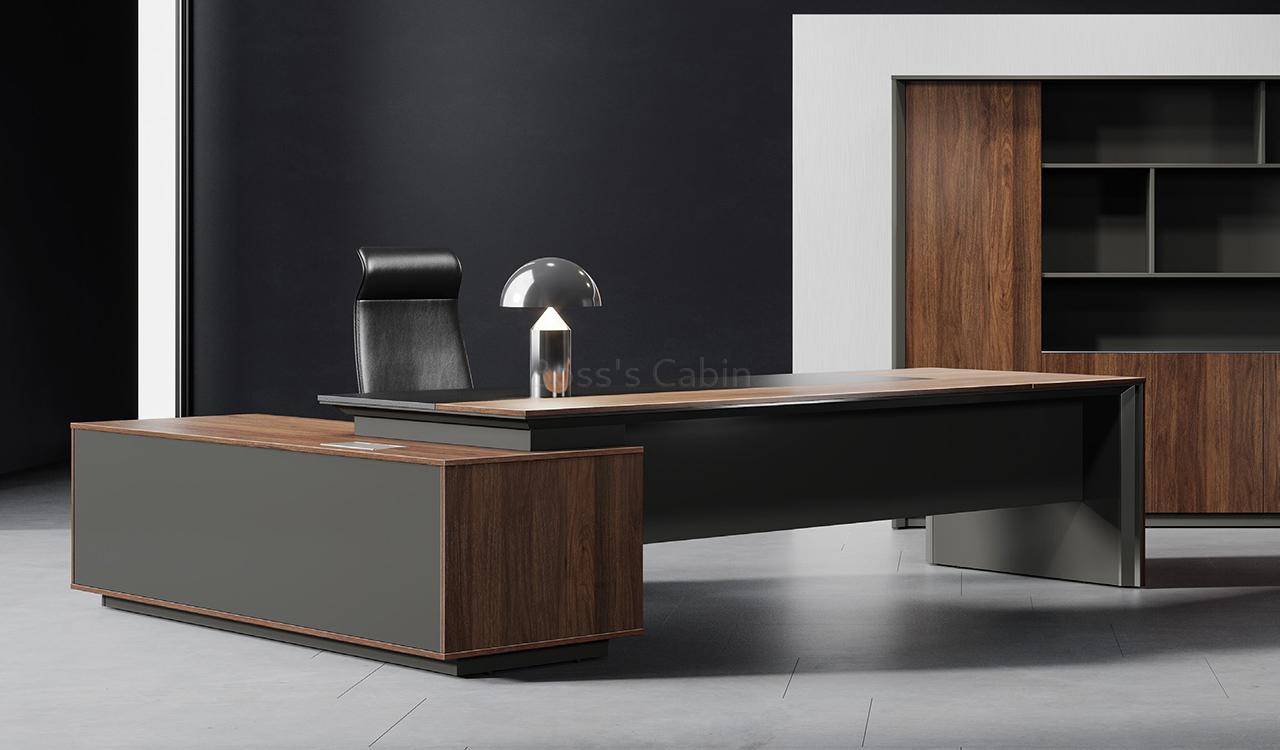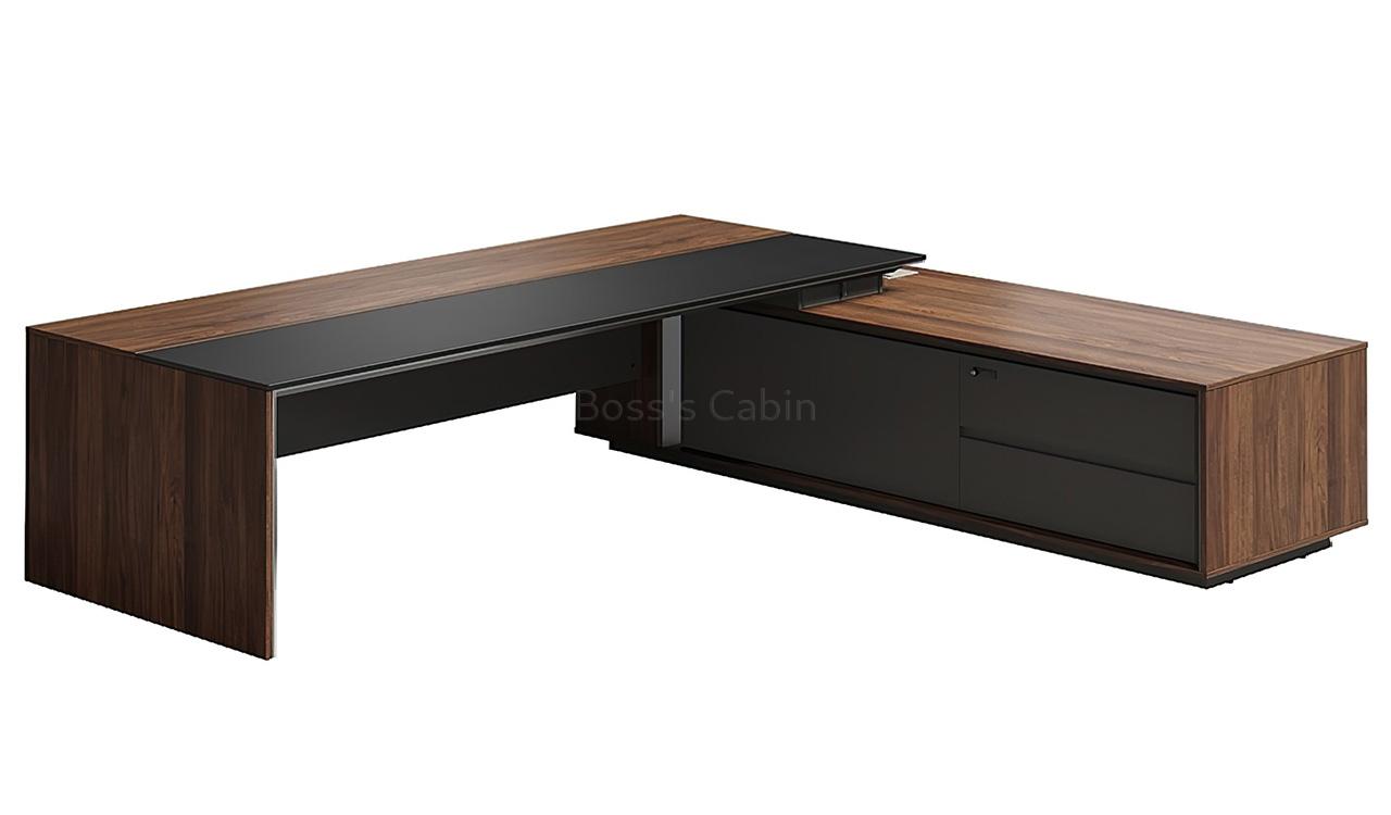 Part of the Maxima series this sleek, trendy and minimal 8.5 feet width office desk comes with side cabinet. It is best suited for large cabins of 200 sft and upward.