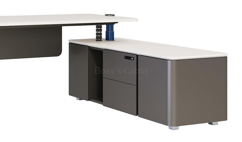 Smart Biometric Lock – In keeping with our over all design sensibilities the drawer of the side cabinet is equipped with smart, high protection passcode operated electronic lock to provide maximum security to your confidential documents as well convenience of use. The storage drawer itself is built with Hettich bottom rail for smooth operation and handling.