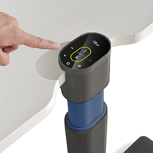 Integrated Digital Control Panel – Touch based control panel integrated on the top of the lifting column making the appearance seamless and clutter free. The ingenious design conceals the wiring within the column and provides a direct view of the panel while sitting or standing. To maintain symmetry both right and left column are equipped with the control panel but only the right one can be used.