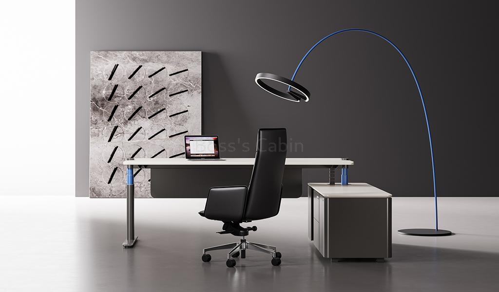 Striking Mix of Colors– The desk is finished with lacquer and HPL wooden surface in combination of warm white, meteor gray and ink blue. The special surface coating comes from the cutting edge surface finish provider Covestro. The advanced technology special coating is skin friendly apart from being stain/scratch/wear resistant.
